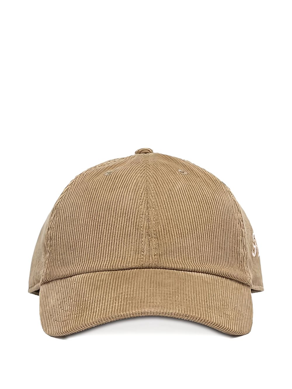 dettaglio logo ricamato sul lato, tesa curva, chiusura con velcro, 100% cotone