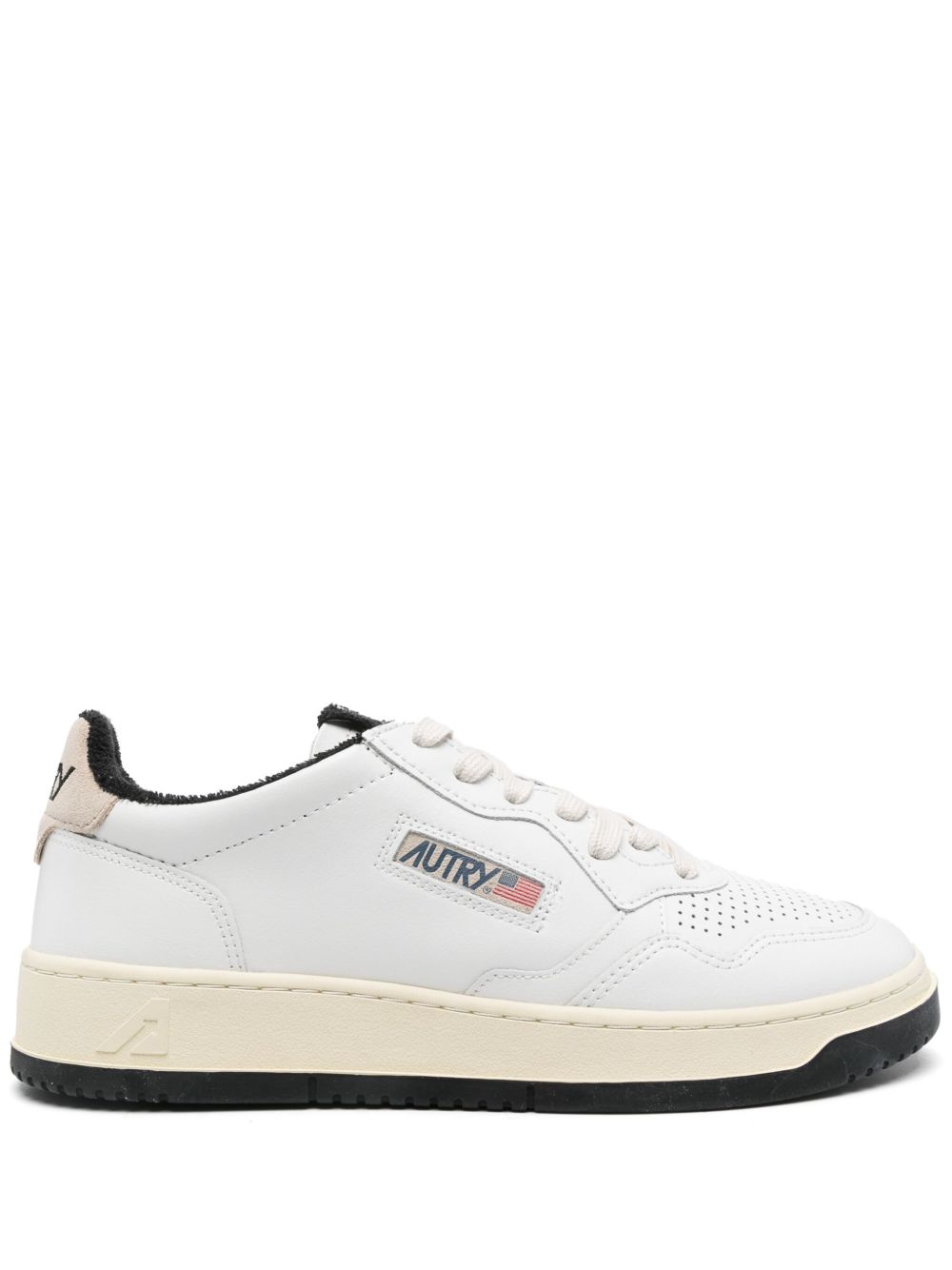 realizzata in pelle, logo ricamato sul tallone, etichetta logata sul lato, chiusura frontale con lacci, punta traforata, suola alta in gomma
