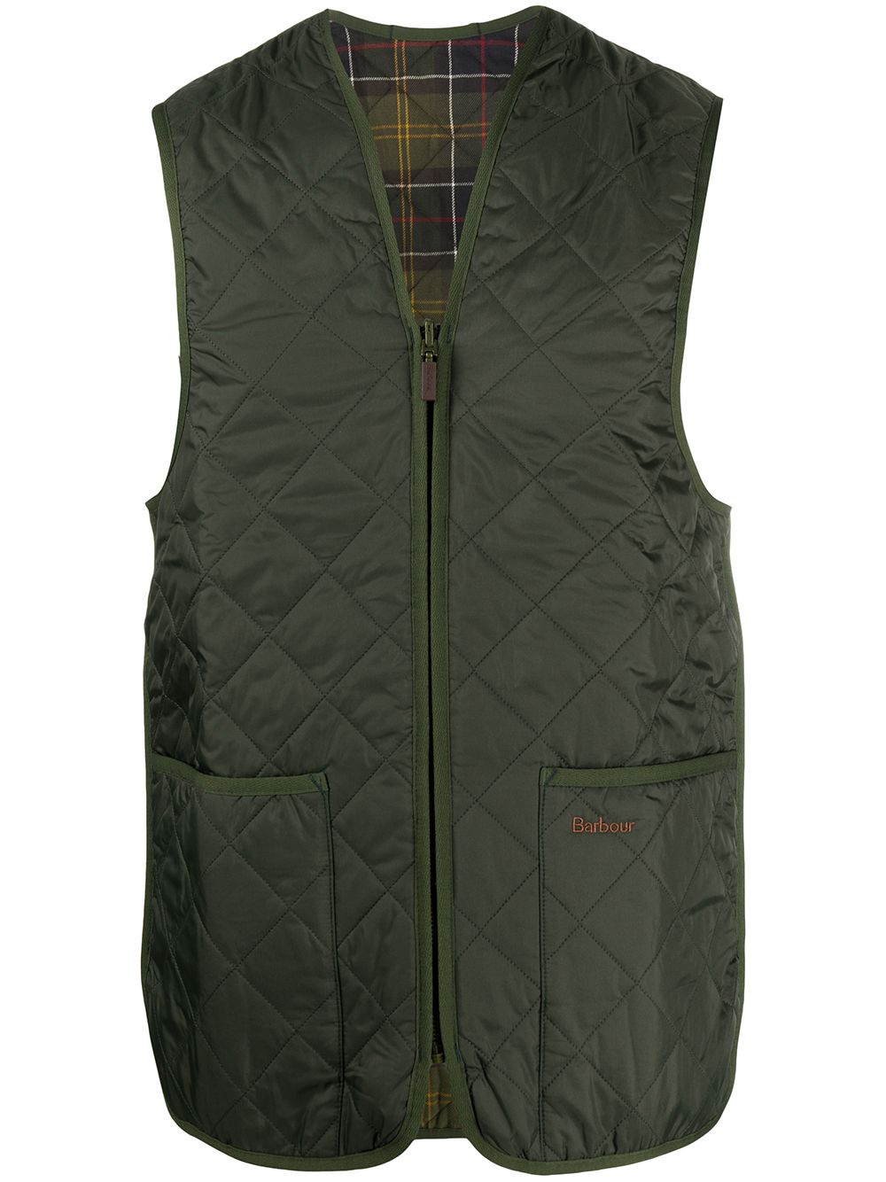 realizzato in nylon, design a rombi, chiusura frontale con zip, due tasche davanti a toppa con logo ricamato sulla sinistra