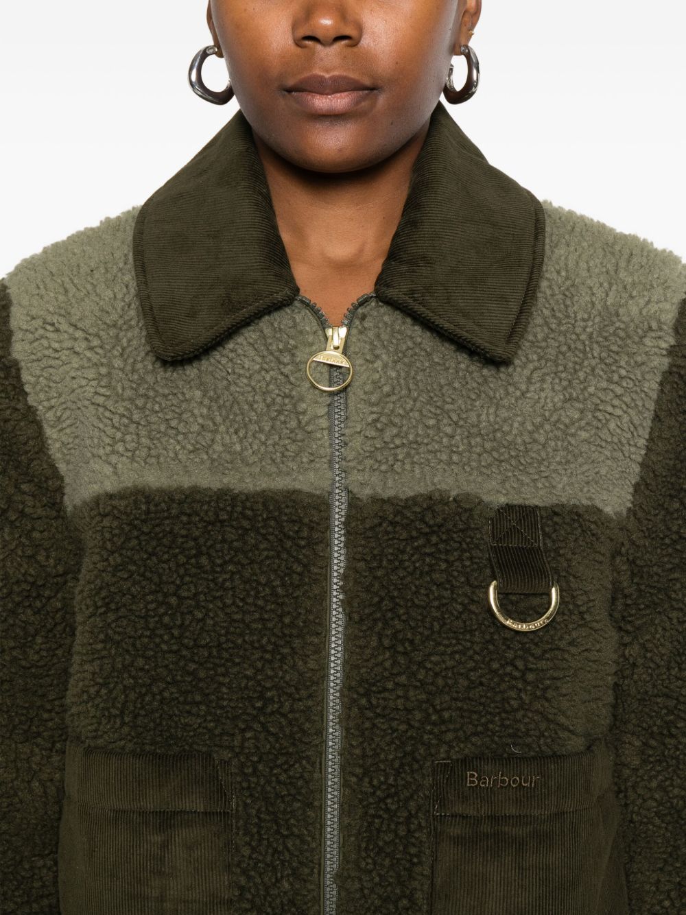 Nata nel 1981 e divenuta unicona Barbour, la giacca Spey torna protagonista nella nuova versione in pile cropped Malena. Una reinterpretazione contemporanea del modello darchivio, arricchita dal caratteristico anello a D che richiama il design originale. Realizzato in ecopelliccia, chiusura frontale con zip, due tasche davanti aperte con logo ricamato sulla sinistra, tasche rifinite da dettagli in pile e a coste sottili a contrasto, esterno 100% poliestere, interno 100% poliuretano