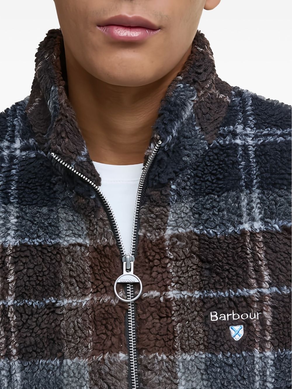 realizzato in spesso pile sherpa, decorato dalliconico tartan unisce calore e tradizione in un capo dal fascino autentico, logo ricamato sulla sinistra altezza petto, due tasche aperte davanti, chiusura frontale con zip, esterno 100% poliestere, fodera principale 100% cotone, fodera delle maniche 100% poliestere
