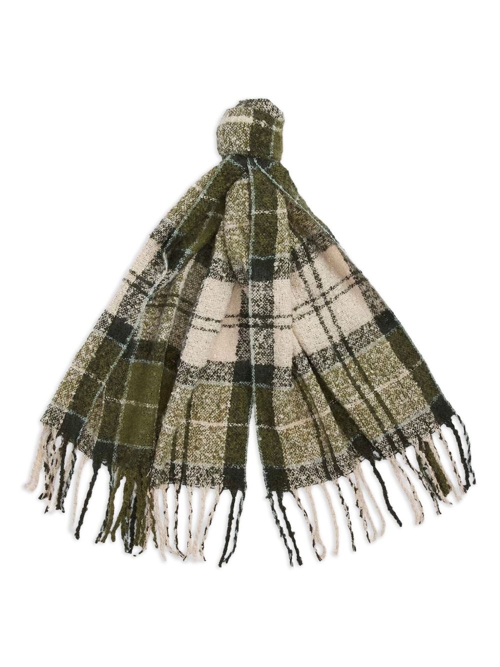 realizzato in tessuto effetto lana a fantasia tartan, pon pon in ecopelliccia
