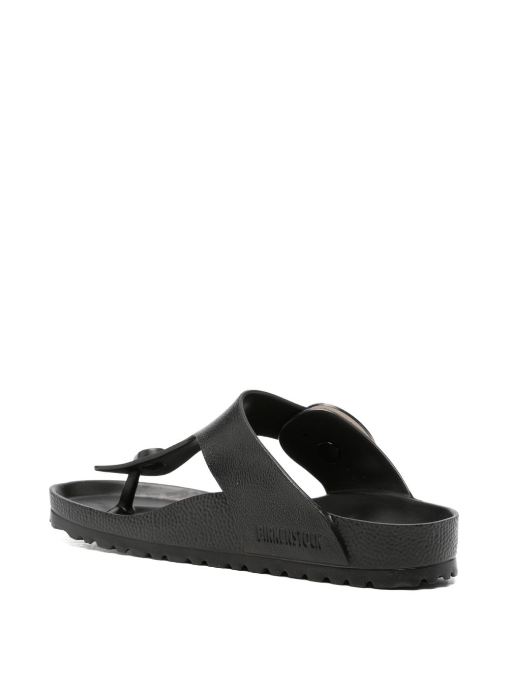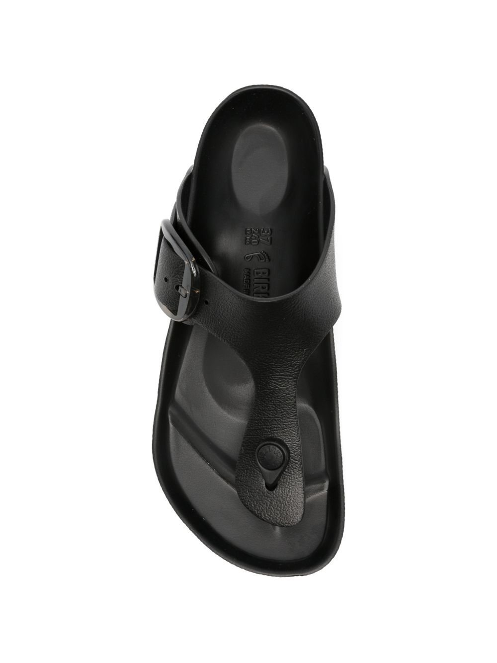Infradito Birkenstock modello Gizeh Big Buckle realizzate interamente in EVA nera, materiale tecnico ultraleggero, flessibile e resistente allacqua.