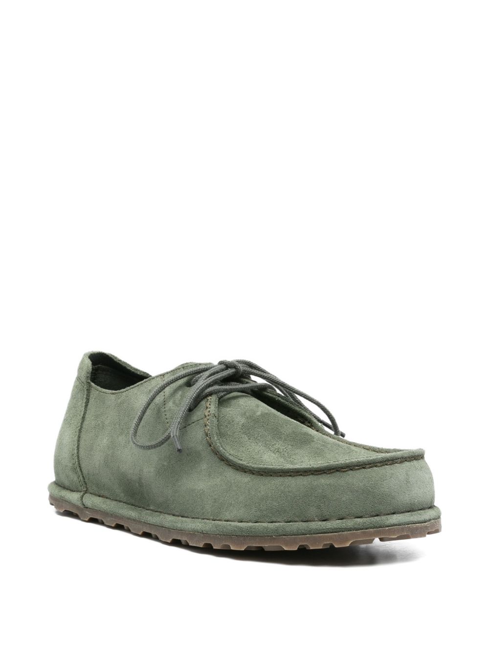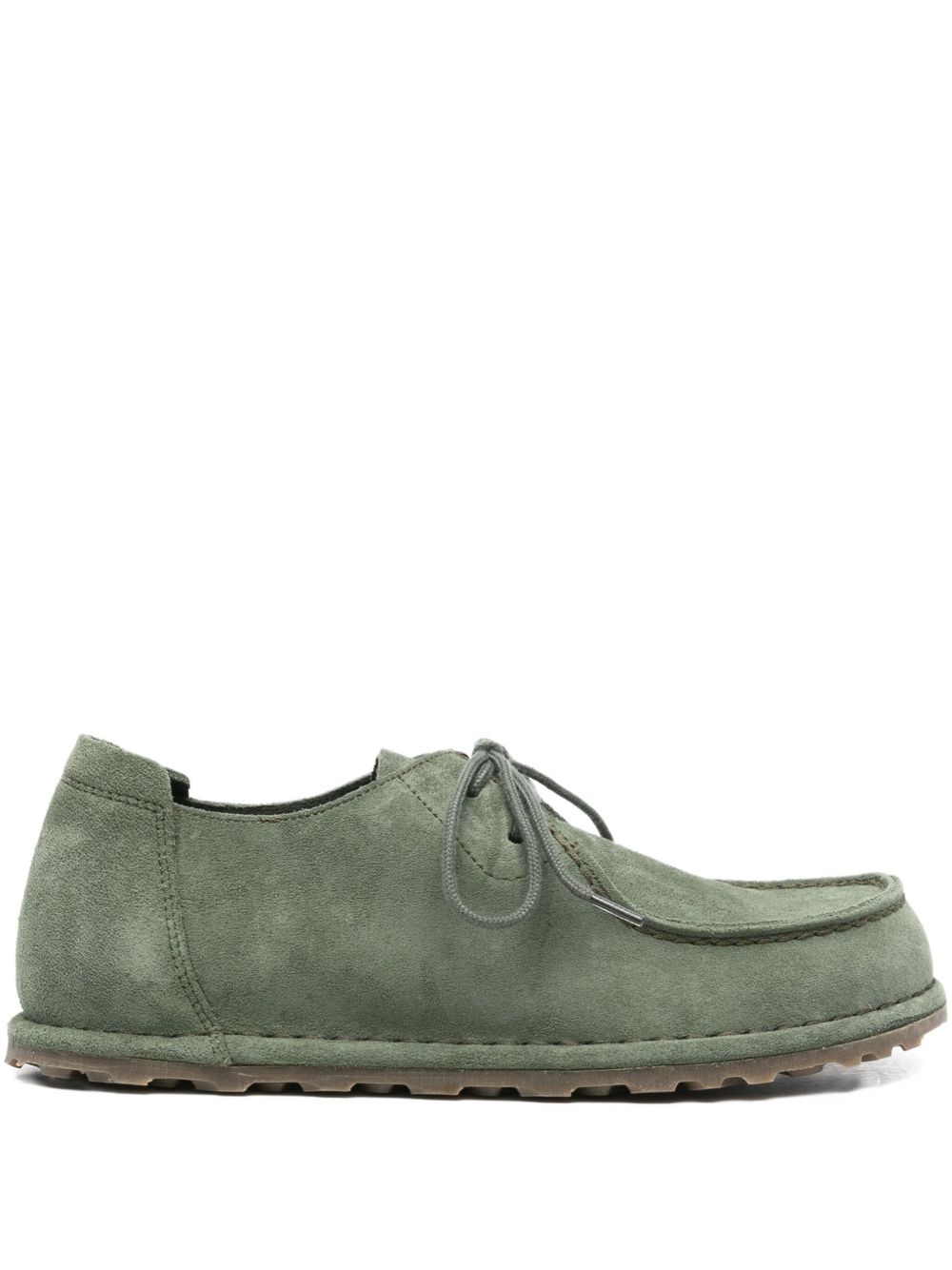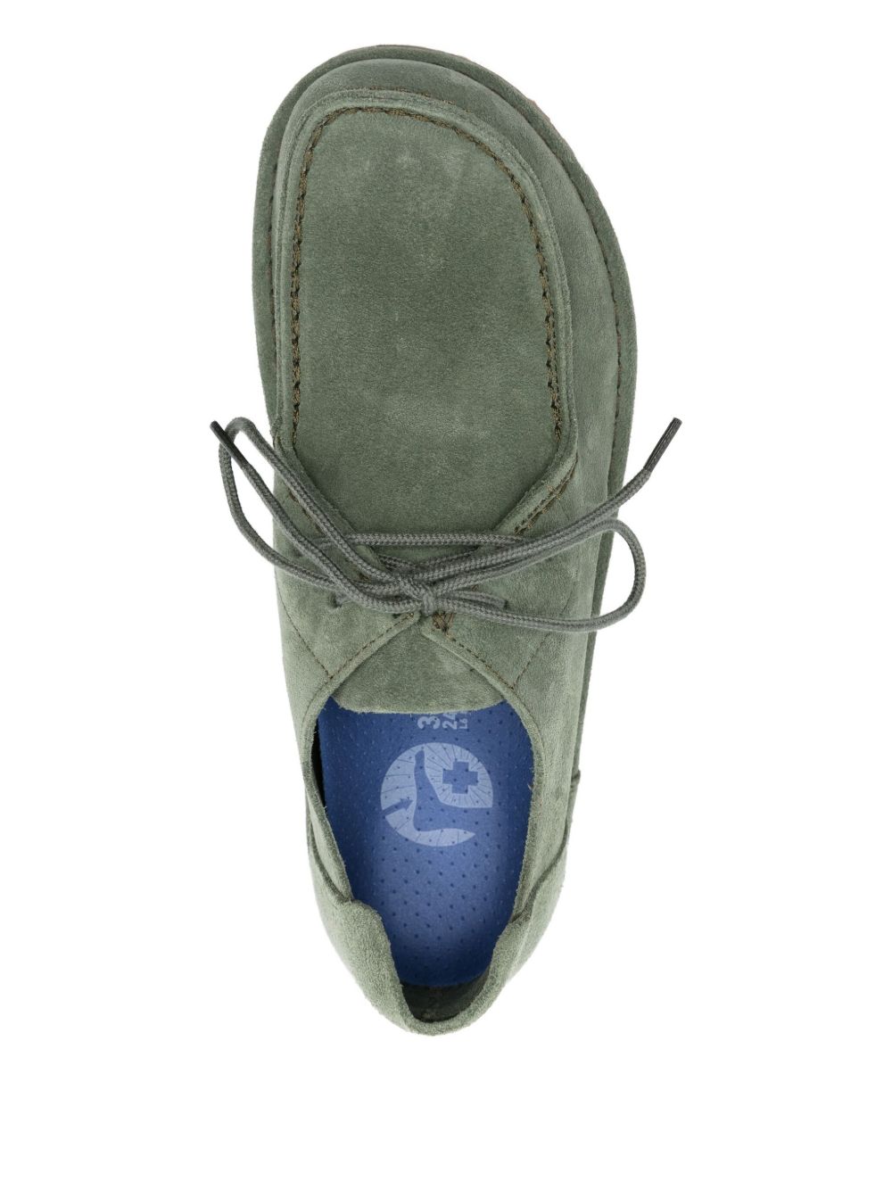 tomaia realizzata in pelle scamosciata, cuciture a vista, sottopiedi in microfibra, suola in gomma di caucciù naturale con elementi in sughero