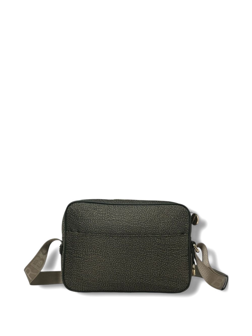 realizzata in tessuto riciclato, manico logato regolabile, tasca sul retro aperta, chiusura superiore con zip, tasca interna aperta, lunghezza 27 cm, altezza 18 cm, profondità 5 cm, poliestere riciclato 100%