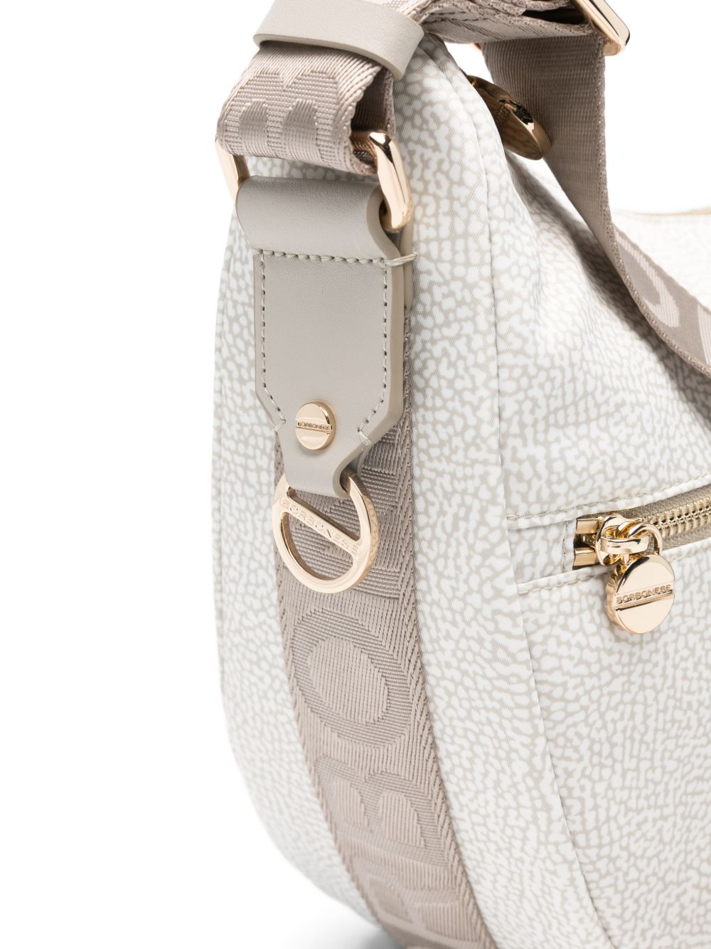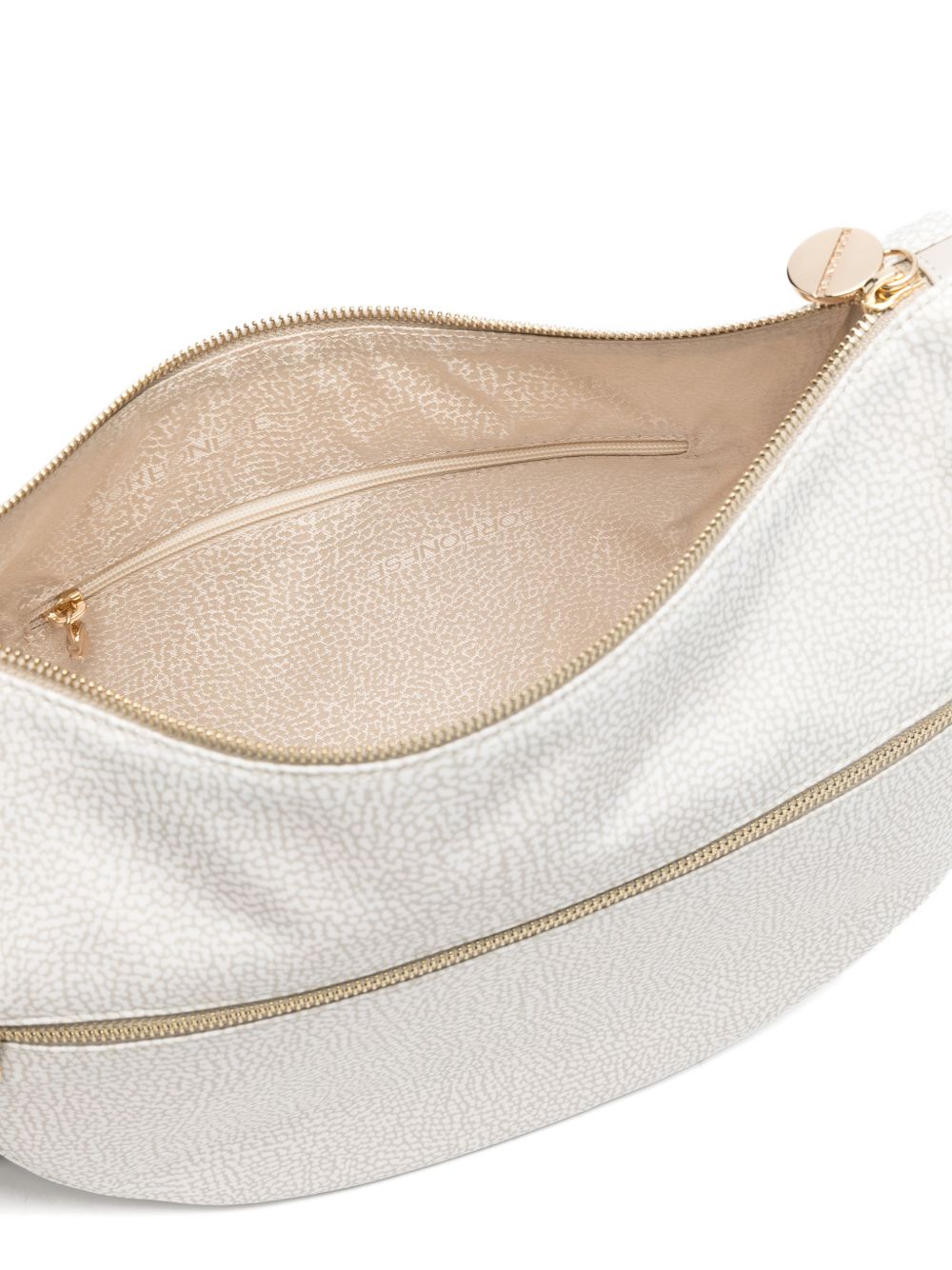 Realizzata in tessuto, stampa Op, manico logato regolabile, tasca esterna con zip, chiusura superiore con cerniera, tre tasche interne di cui una con zip, dettagli in metallo color oro, larghezza 12 cm, altezza 32 cm, profondità 30 cm, 100% pelle, 100% poliestere