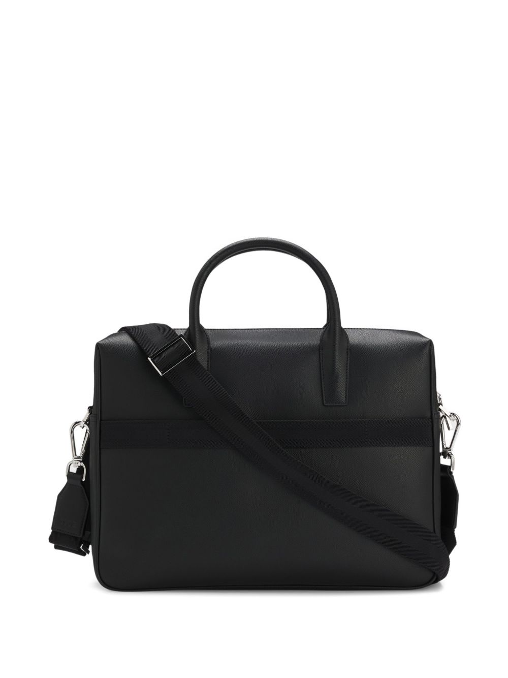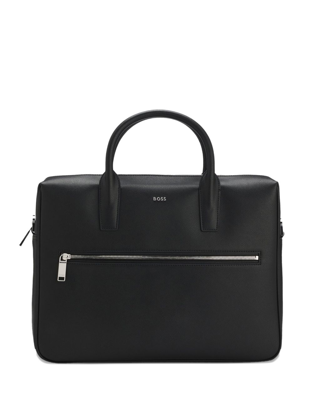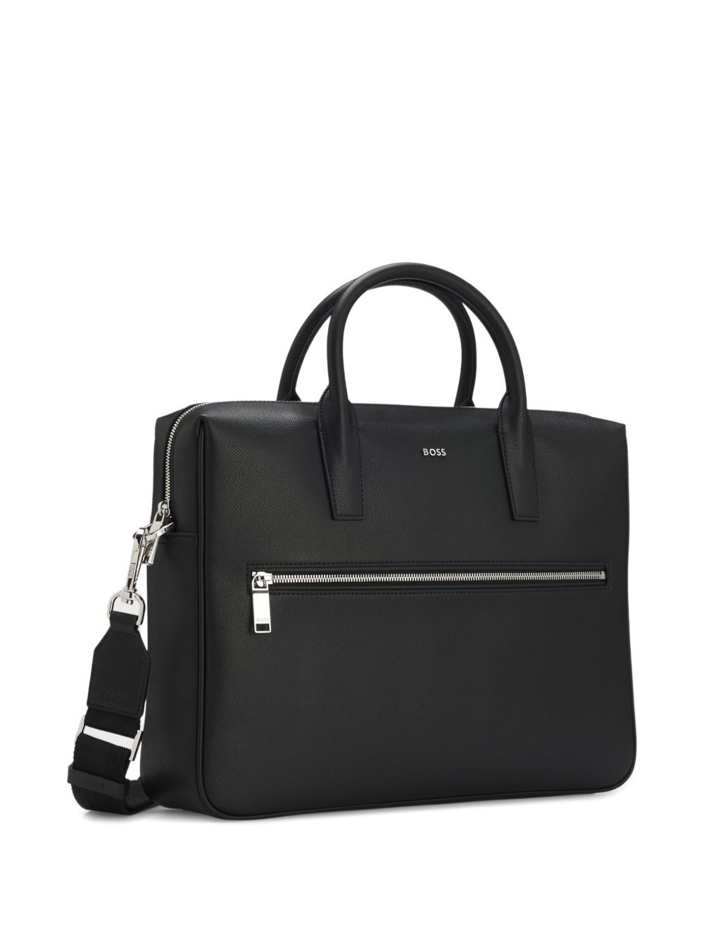 realizzata in pelle rigenerata, tasca frontale con zip, chiusura superiore con zip, tracolla removibile e regolabile, tasca interna con zip ed aperta, lunghezza 28.5 cm, altezza 28.5 cm, profondità 8 cm