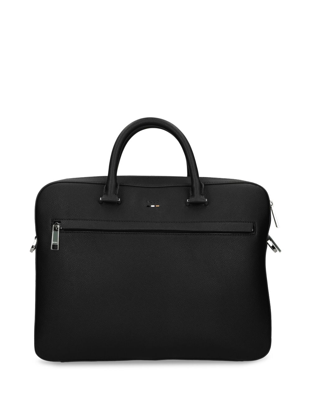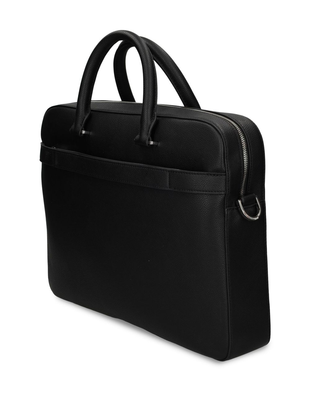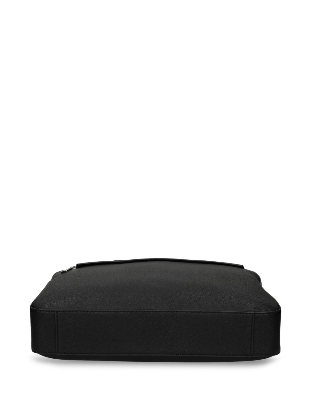realizzata in ecopelle martellata, fascia per aggancio al trolley, tasca esterna ed interna con zip, dettagli in metallo lucido, logo in rilievo, lunghezza 38 cm, altezza 29 cm, profondità 7 cm