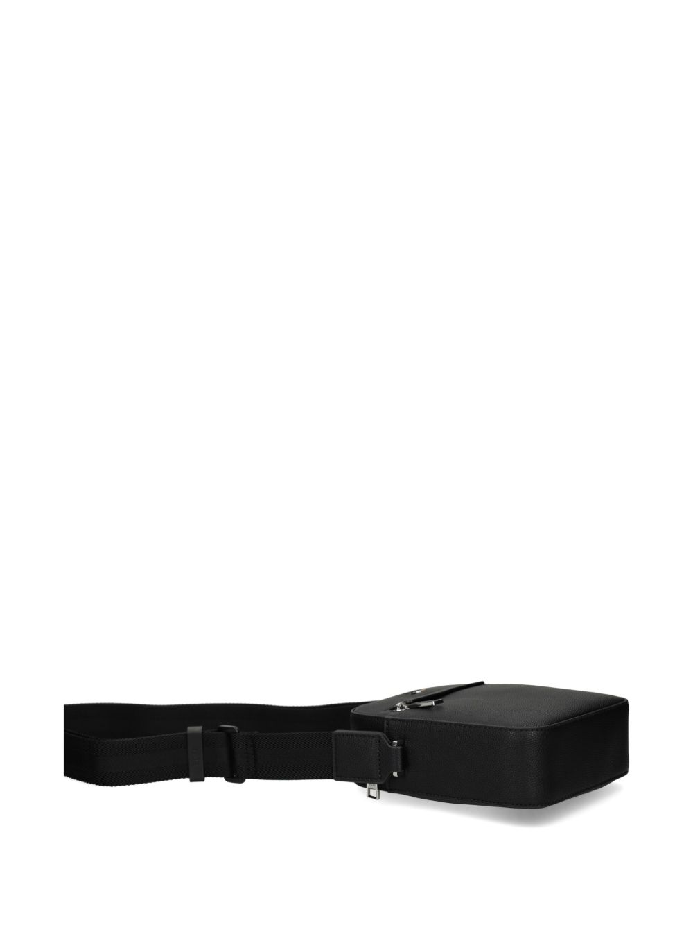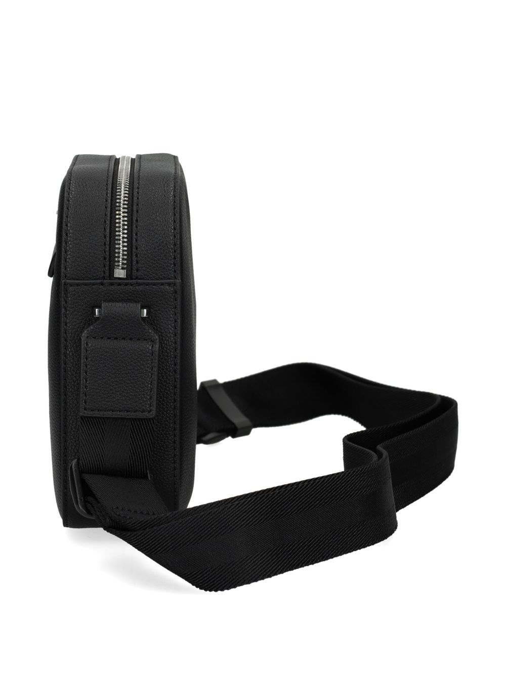 realizzata in ecopelle martellata, tasca frontale con zip, logo applicato, tracolla regolabile, chiusura superiore con zip, altezza 18 cm, lunghezza 16 cm, profondità 6 cm