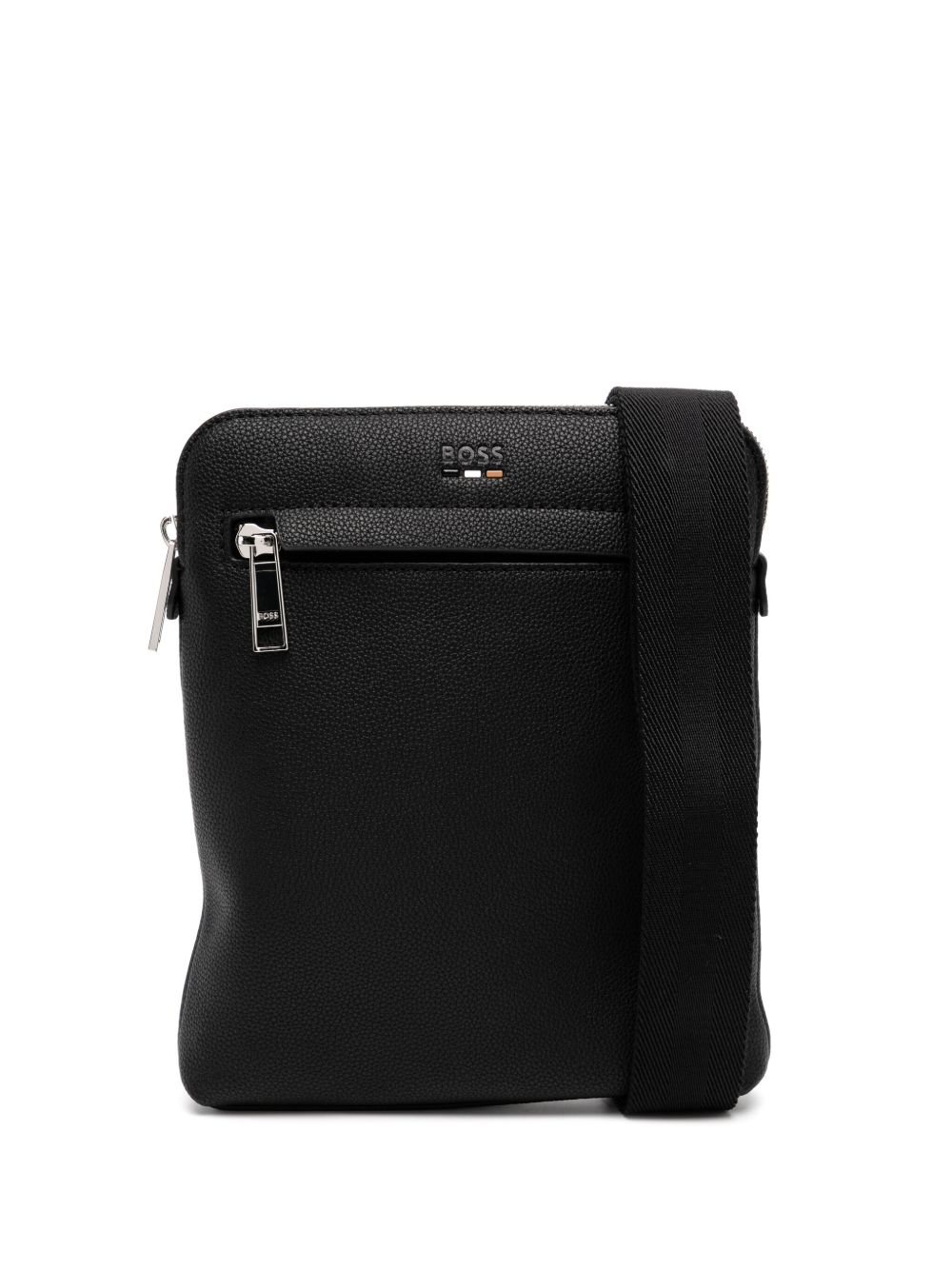 realizzata in ecopelle, logo sul davanti, tracolla regolabile, tasca sul davanti con zip, chiusura superiore con zip, lunghezza 16 cm, altezza 18 cm, profondità 6 cm