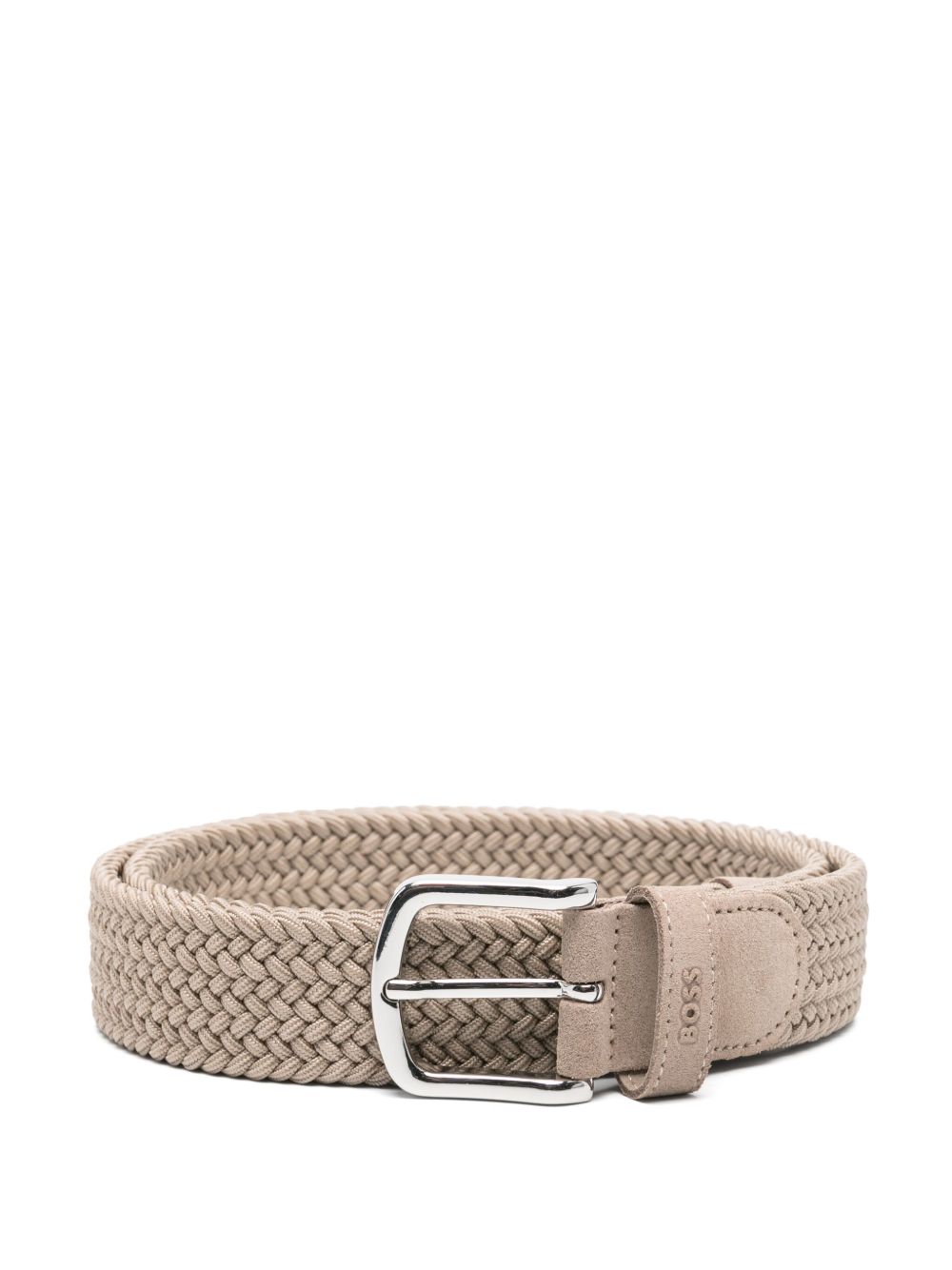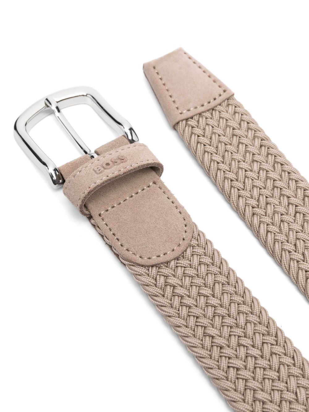 Realizzata in pelle di vitello con lavorazione intrecciata, dettagli in pelle scamosciata, chiusura con fibbia, 100% pelle di vitello, 51% poliestere, 33% lattice, 16% cotone