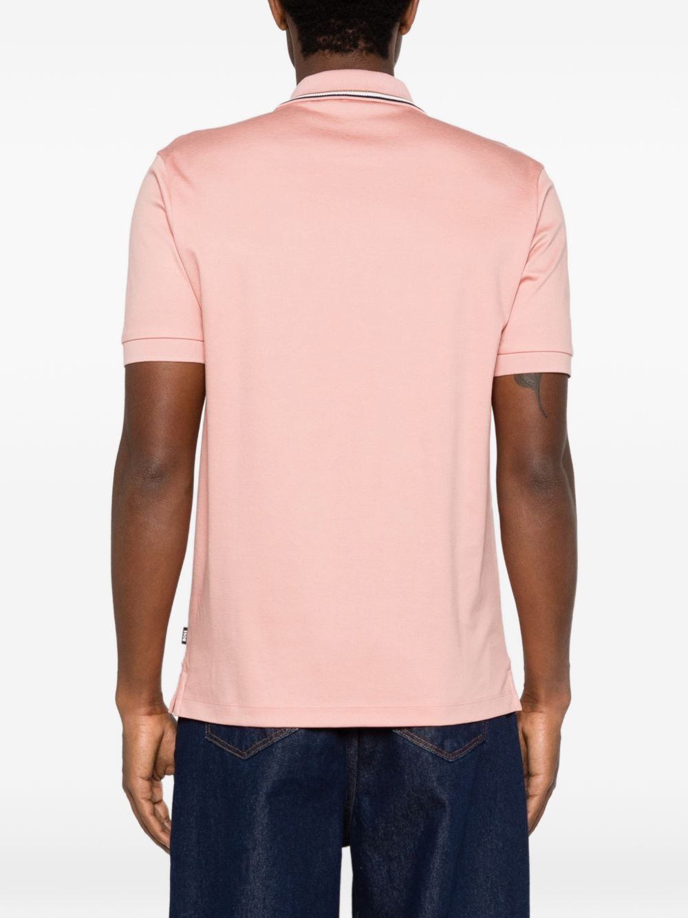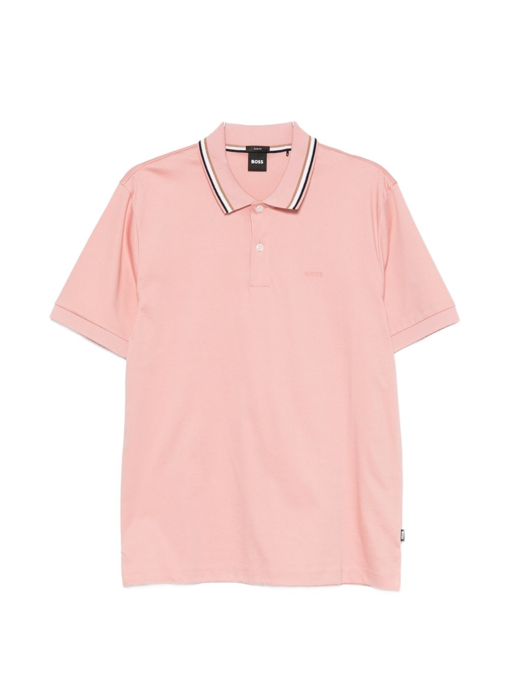 Polo BOSS da uomo in colore rosa con bordini a contrasto, ideale per chi cerca un capo estivo fresco e più distintivo rispetto ai toni classici.