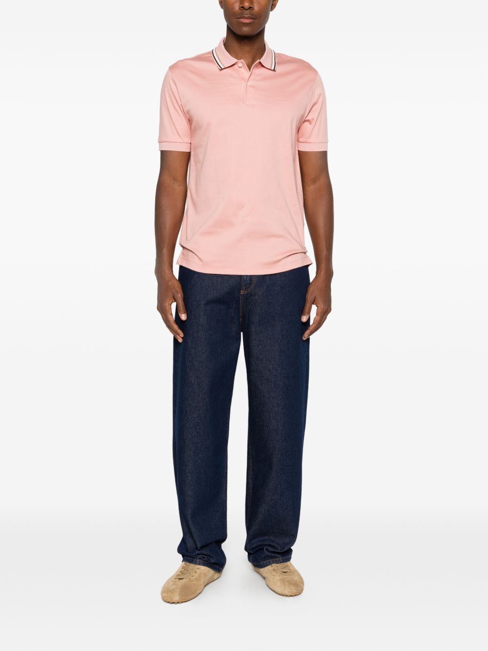 Polo uomo BOSS rosa con bordini a contrasto