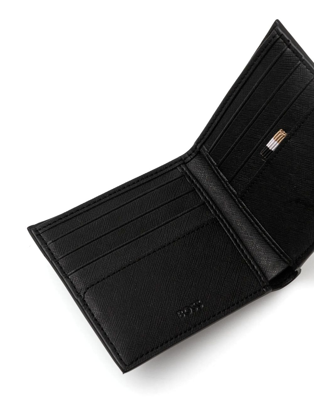 realizzato in pelle rigenerata, piccolo logo argentato, scomparto per banconote e carte di credito, due tasche interne aperte, lunghezza 11 cm, altezza 9.5 cm, profondità 2 cm