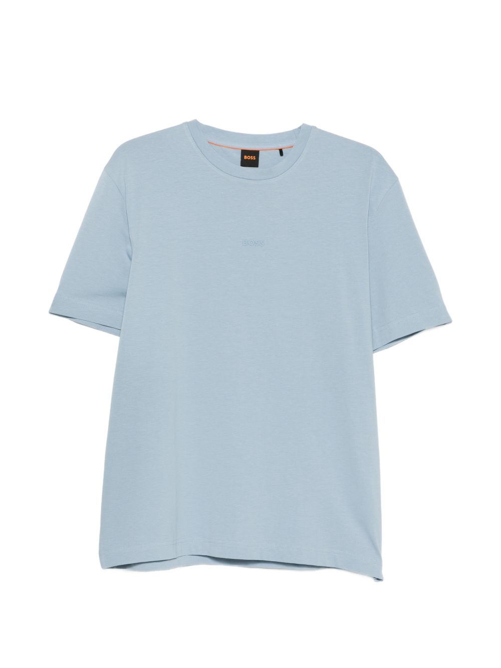 T-shirt BOSS da uomo in colore celeste con logo centrale, pensata per chi cerca un capo base premium ma con un colore più luminoso.