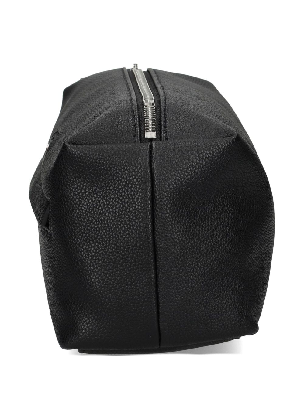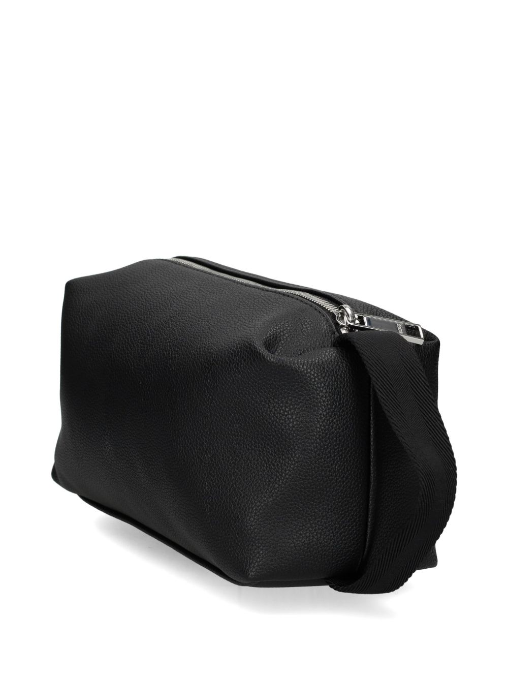 realizzata in ecopelle, trama martellata, cinturino da polso, chiusura superiore con zip, scomparto frontale con zip