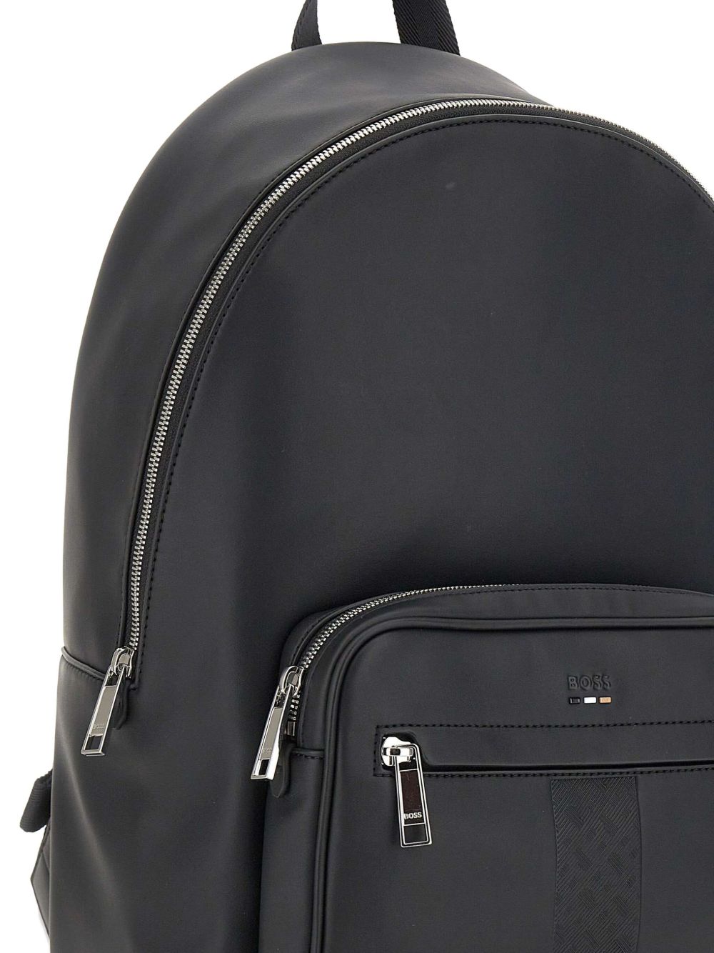 Realizzato in misto poliuretano riciclato, spallacci regolabili, tre scomparti con chiusura a zip, logo goffrato davanti, dettagli in metallo color argento, altezza 40 cm, larghezza 28 cm, profondità 18 cm, 62% poliuretano riciclato, 30% poliestere, 8% poliuretano