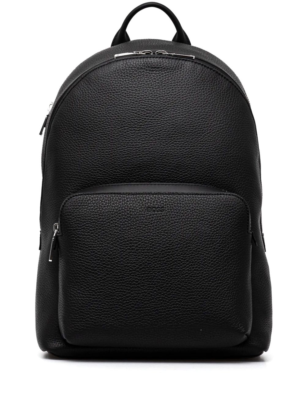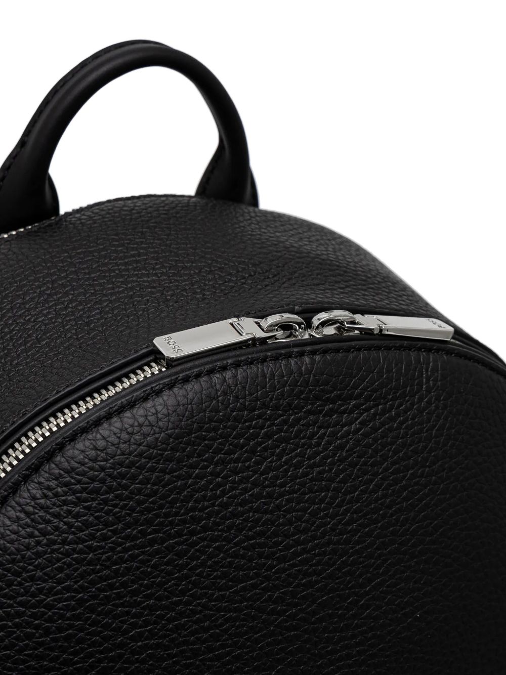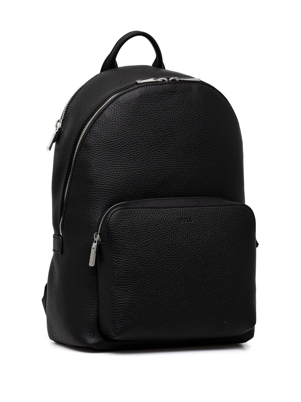 Realizzato in pelle di mucca, effetto martellato, spallacci regolabili, tre scomparti esterni con chiusura a zip, tasca interna con cerniera, logo groffato davanti, dettagli in metallo color argento, altezza 42 cm, larghezza 14 cm, profondità 30 cm,