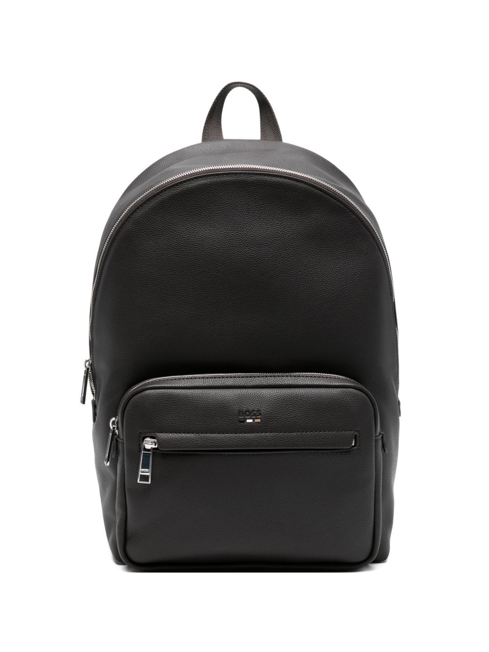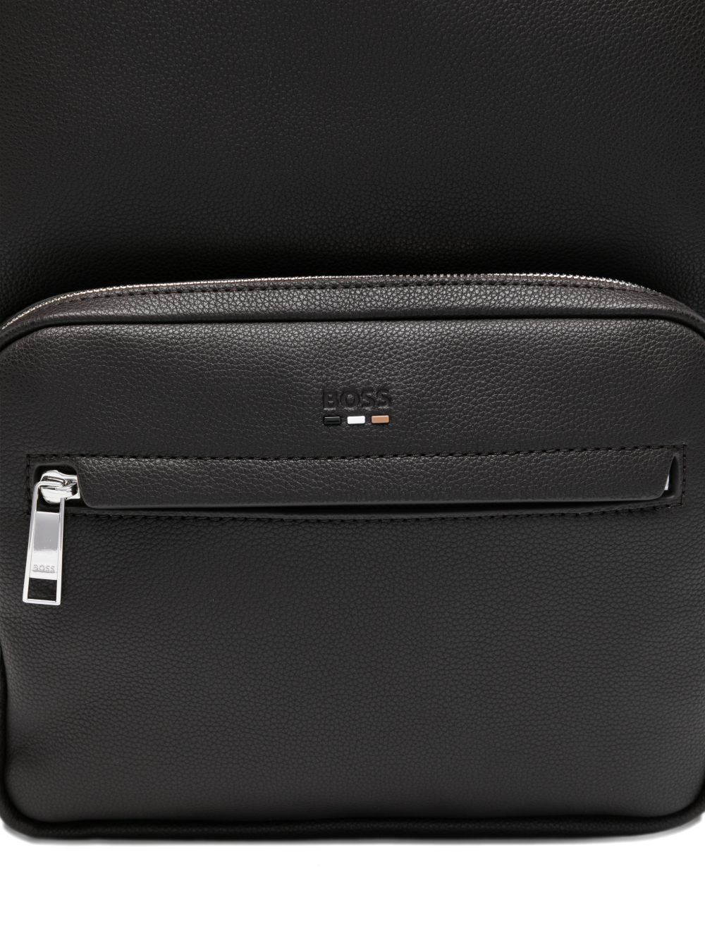 Realizzato in misto poliuretano riciclato, spallacci regolabili, tre scomparti con chiusura a zip, tasca interna con cerniera, logo goffrato davanti, dettagli in metallo color argento, altezza 35 cm, larghezza 30 cm, profondità 16 cm, 62% poliuretano riciclato, 30% poliestere, 8% poliuretano