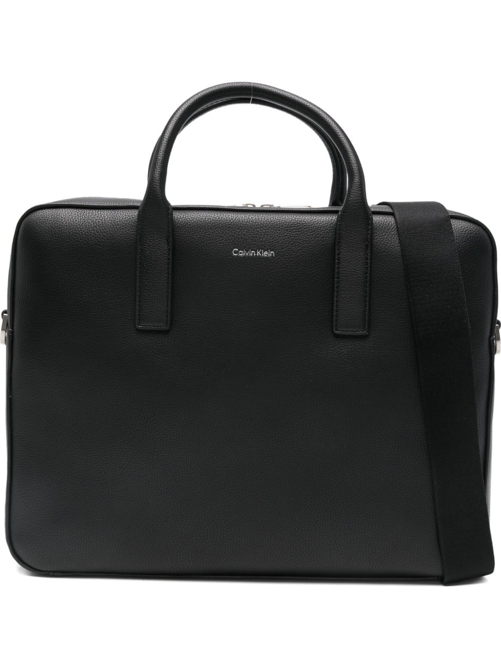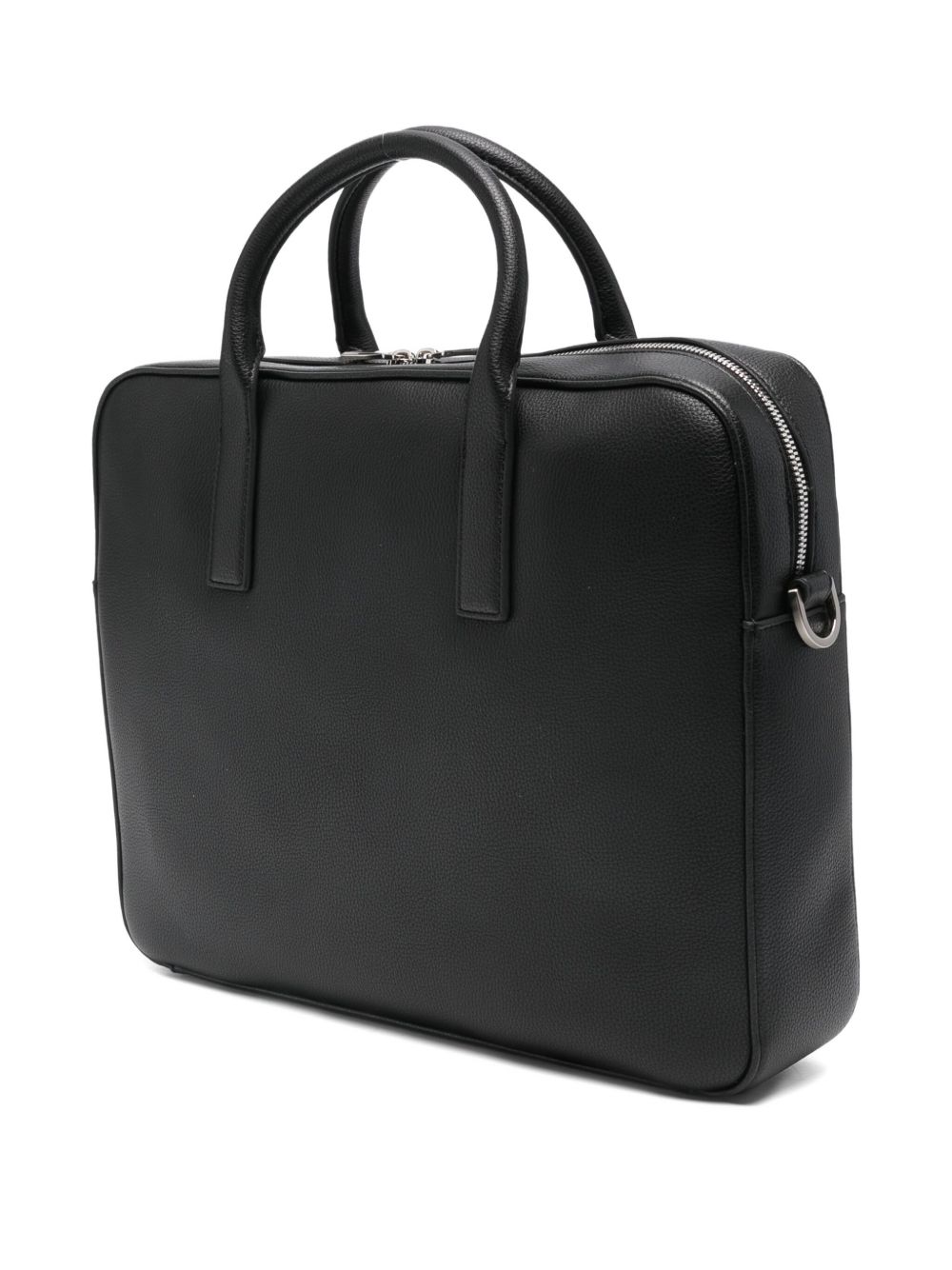 realizzata in poliuretano, doppio manico, tracolla regolabile e removibile, chiusura superiore con zip, applicazione logo in metallo color argento davanti, 100% poliuretano