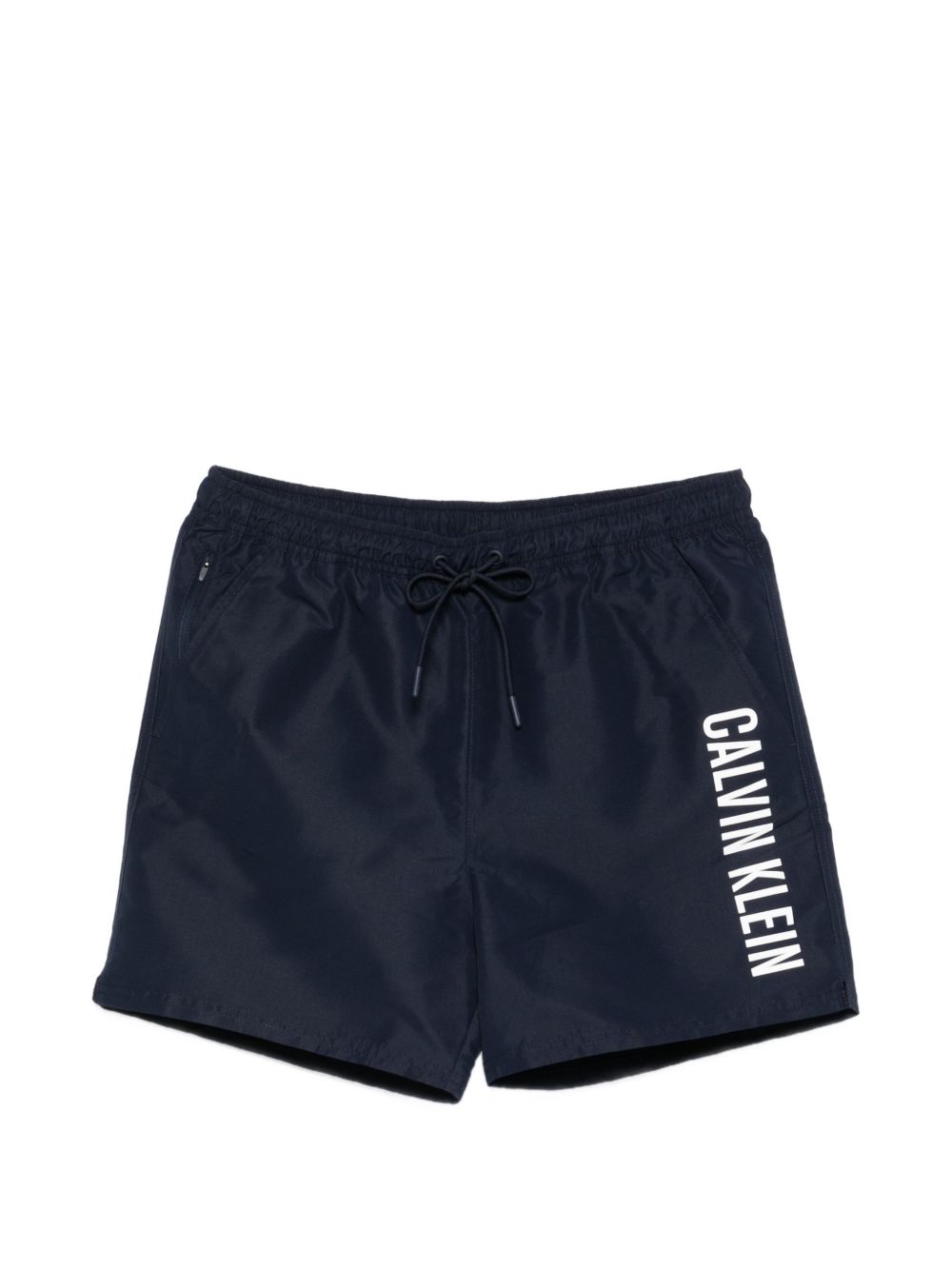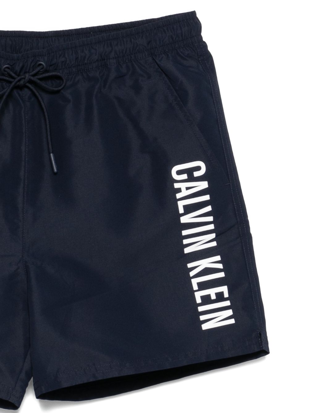 Costume Calvin Klein in colore blu con logo laterale, caratterizzati da uno stile più grafico e moderno.