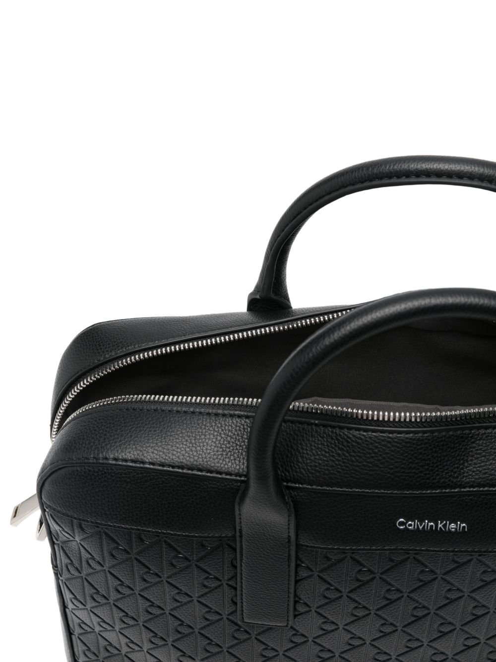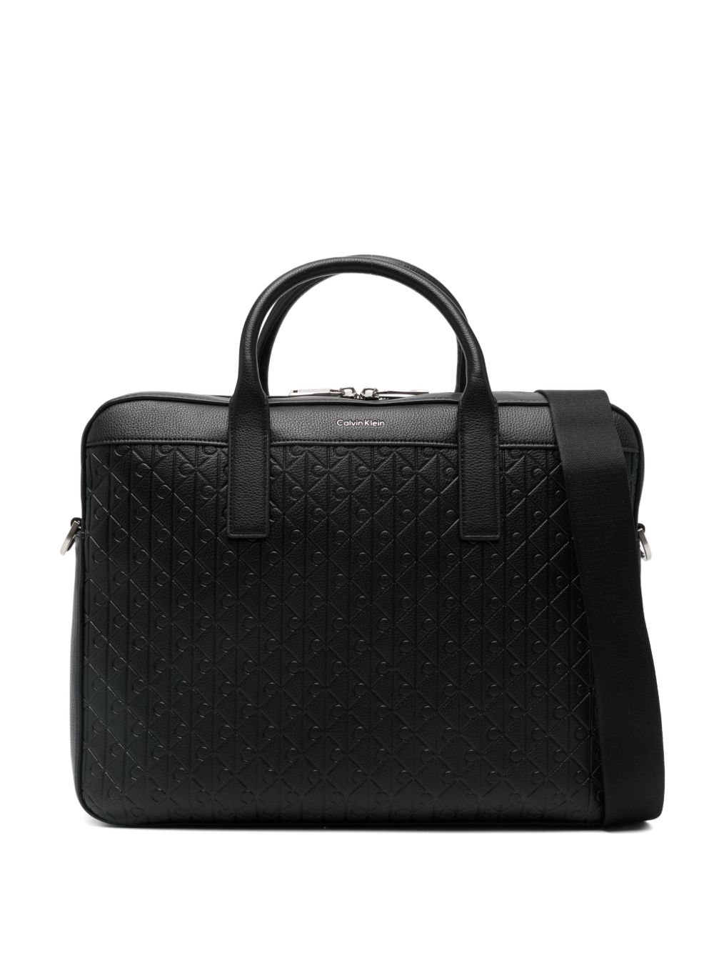 Borsa Calvin Klein in colore nero con motivo allover, perfetta per un look urbano contemporaneo.