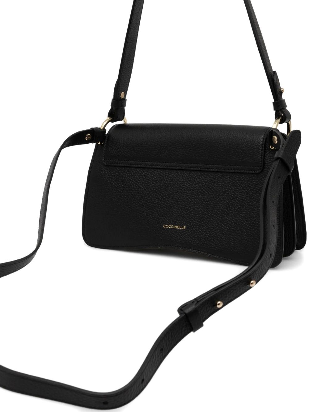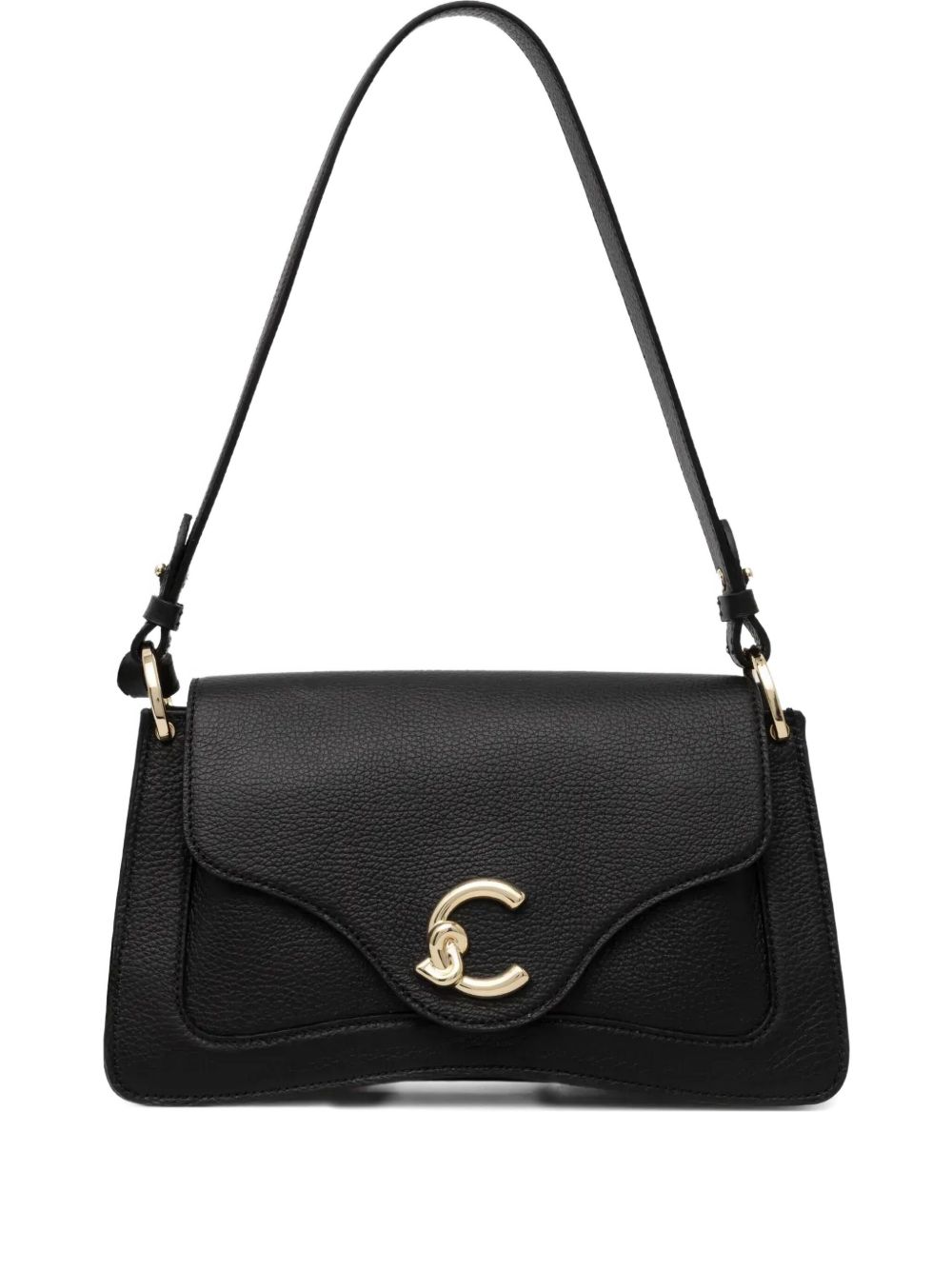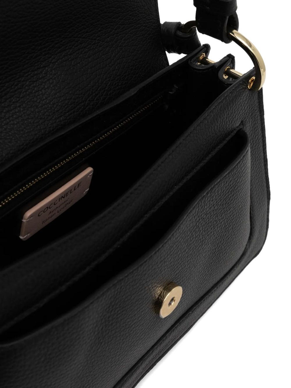 realizzata in pelle, chiusura con magnete, tasca frontale, due scomparti interni, una tasca interna con cerniera, tracolla regolabile e removibile, tramezza interna per migliore organizzazione, targhetta interna rosa logata, 30 x 18 x 10 (cm)