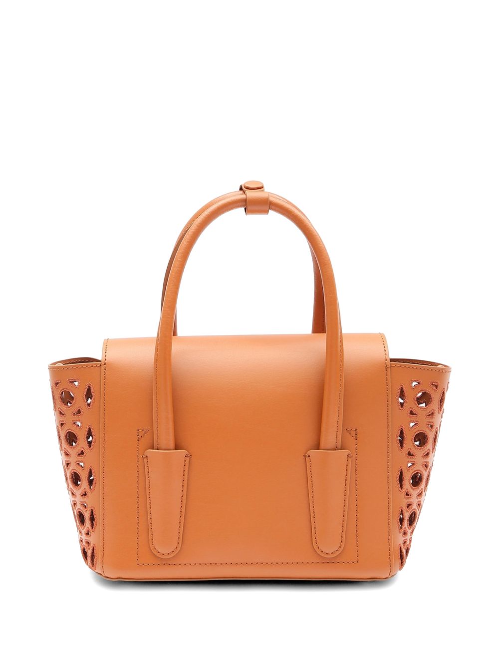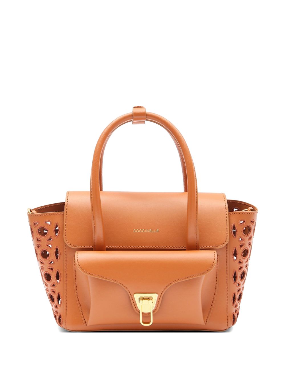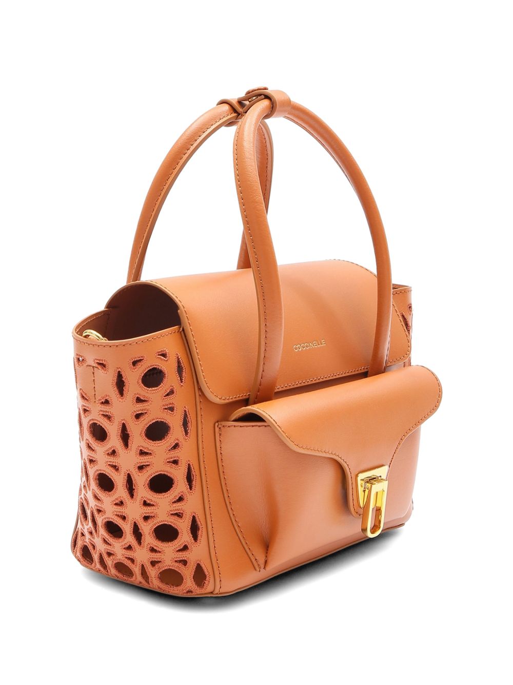Borsa Coccinelle bauletto in pelle arancione, caratterizzata da una struttura compatta e femminile.