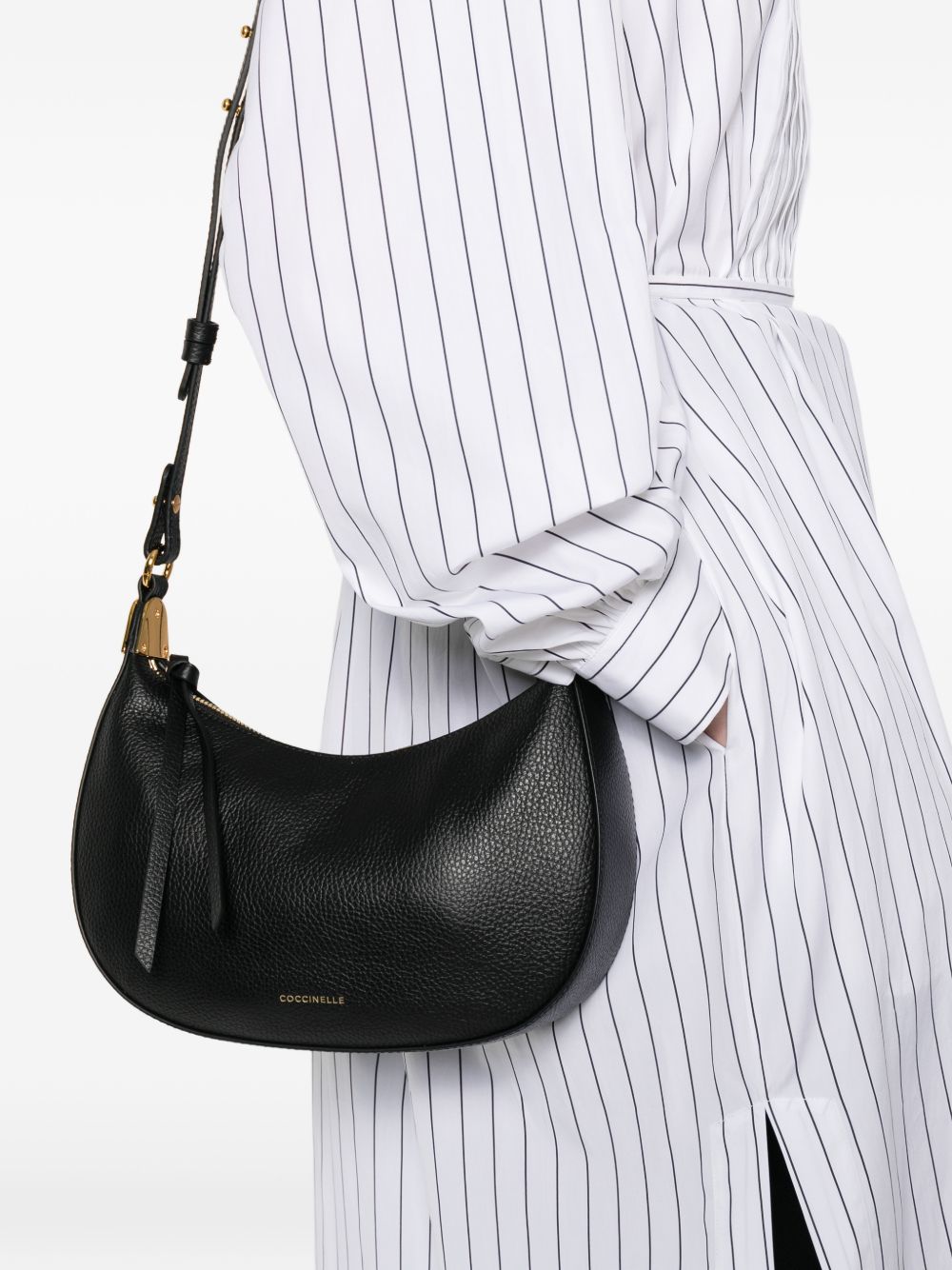 Borsa Coccinelle modello hobo in pelle nera, caratterizzata da una forma morbida e molto versatile.