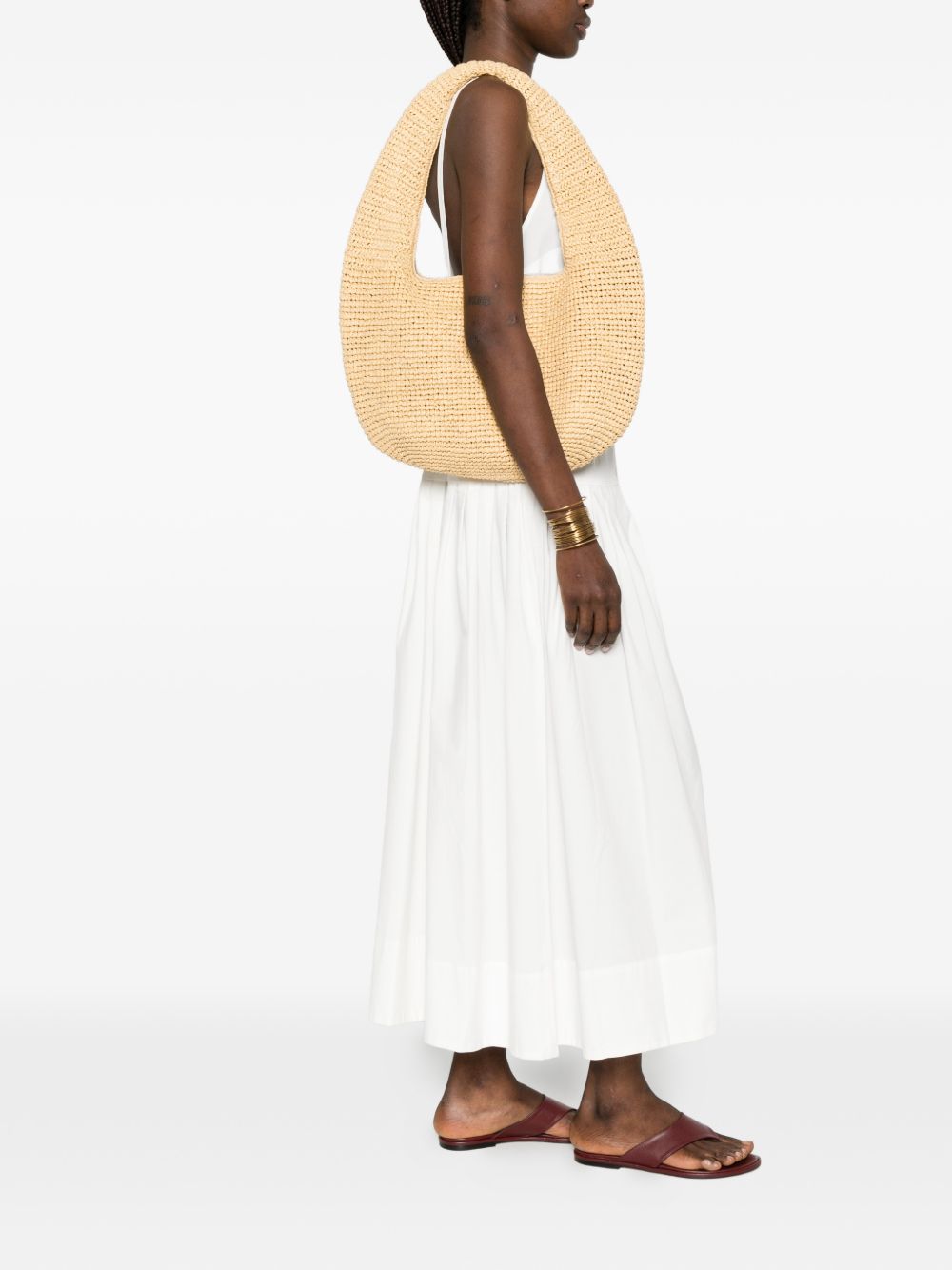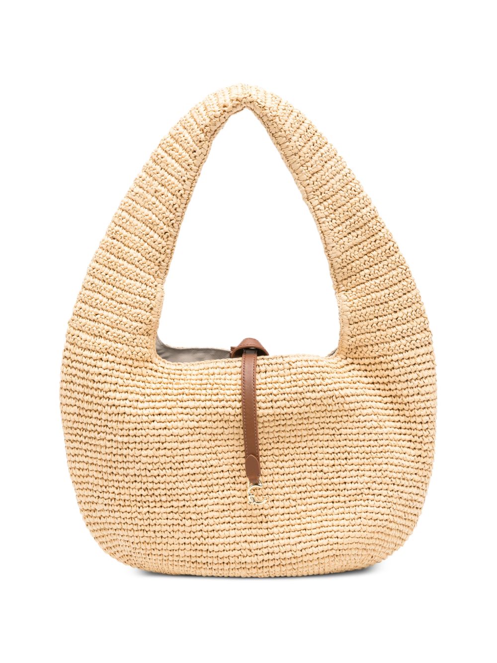 Borsa Coccinelle modello sacca in rafia sabbia, perfetta per la stagione estiva grazie al suo look naturale e leggero.