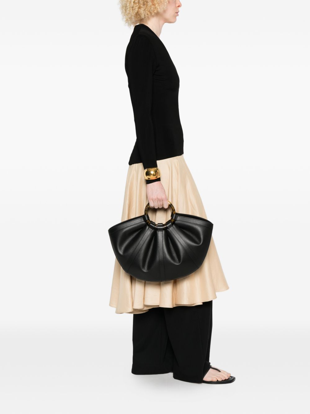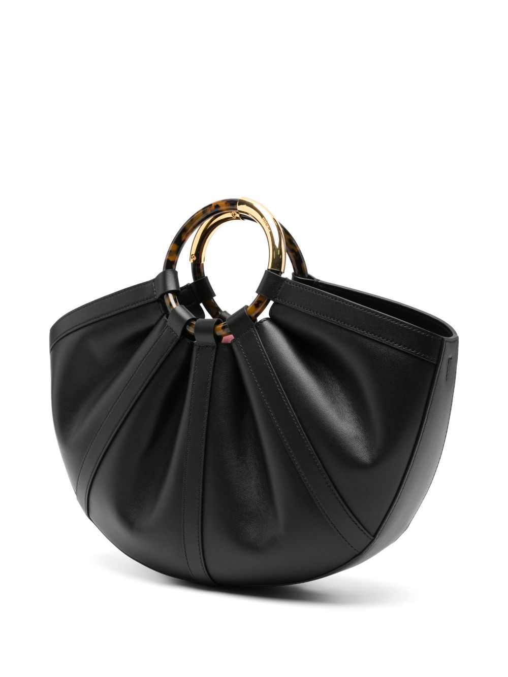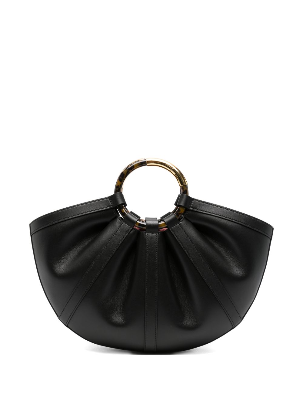 Borsa shopping Coccinelle in pelle nera con anello decorativo di grandi dimensioni, elemento distintivo del modello.