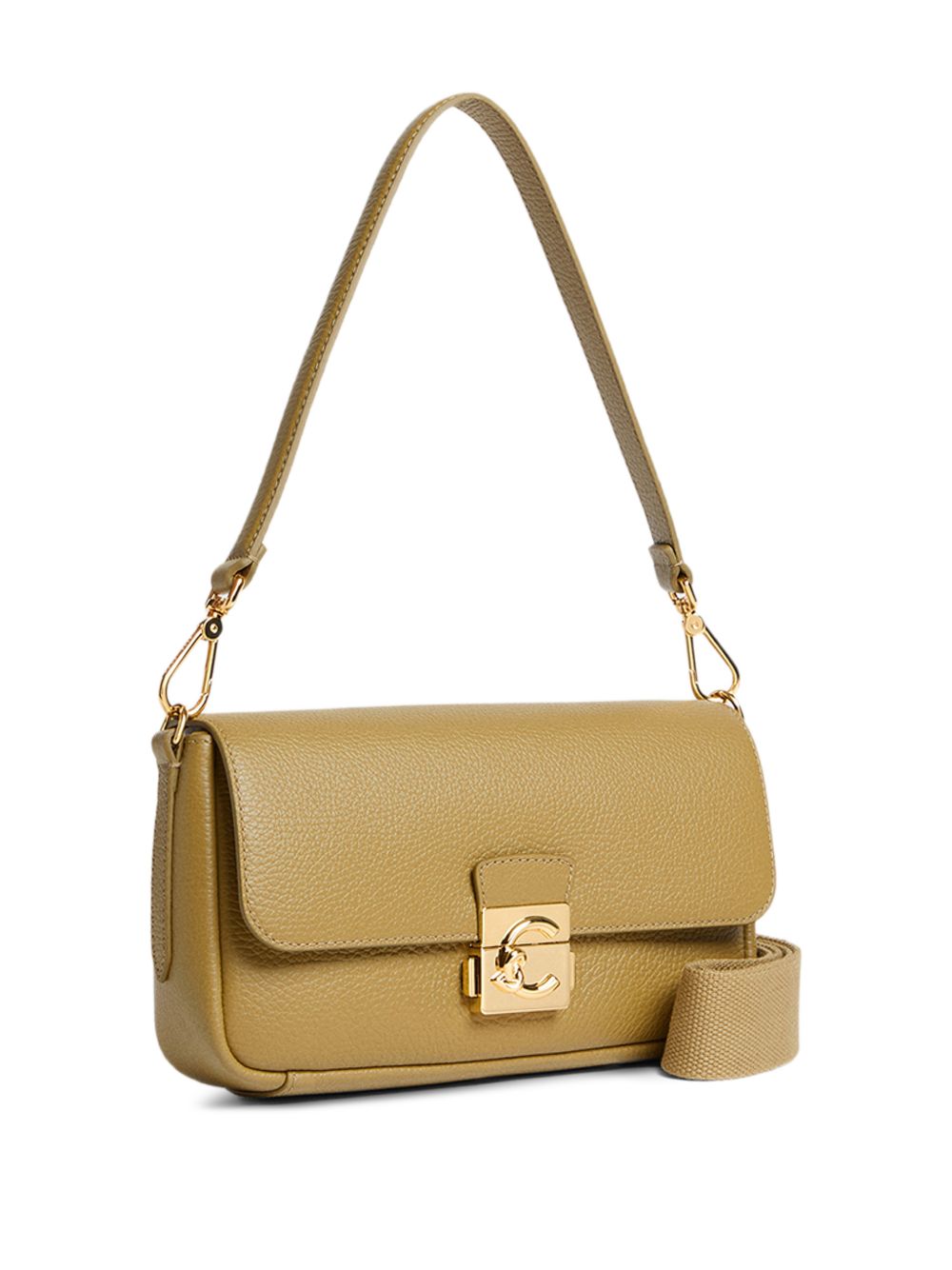 Borsa Coccinelle tracollina in pelle beige, compatta e versatile, ideale per il tempo libero.
