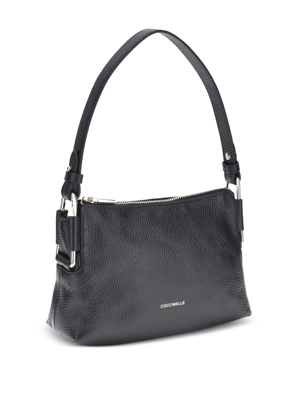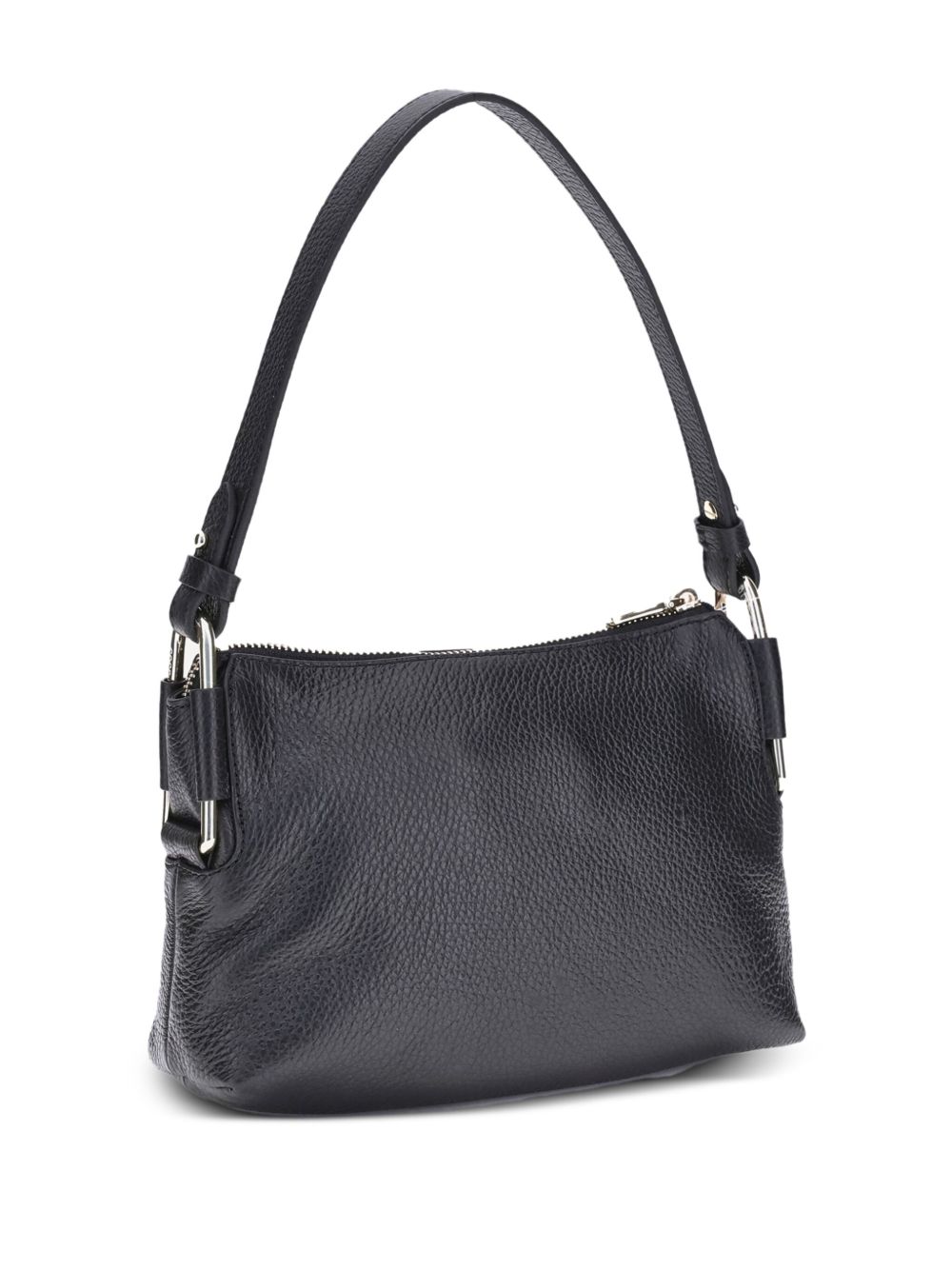 realizzata in pelle, manico, chiusura con zip, interno in tessuto, scritta con logo color argento davanti, 23 x 16 x 7 (cm)