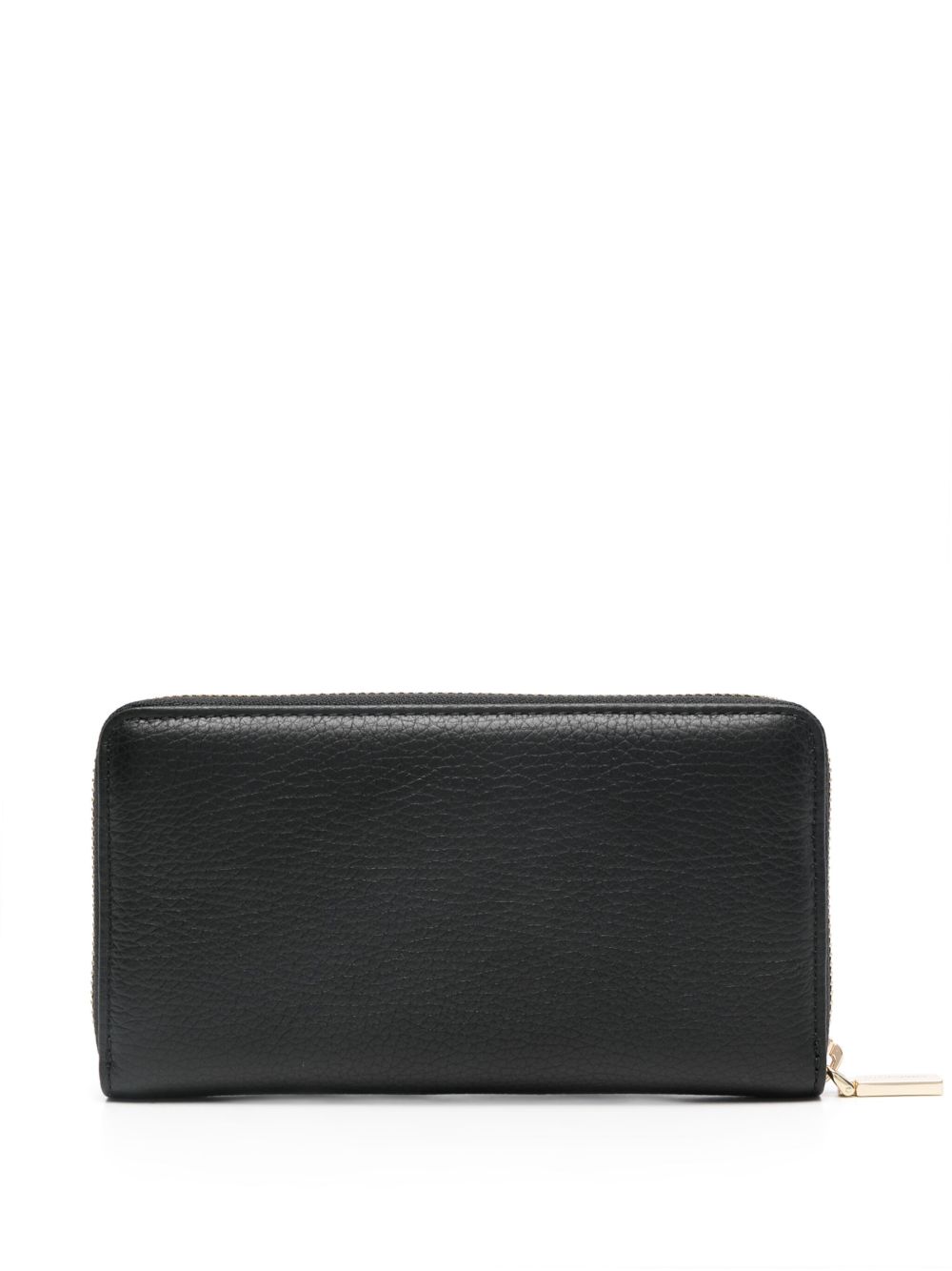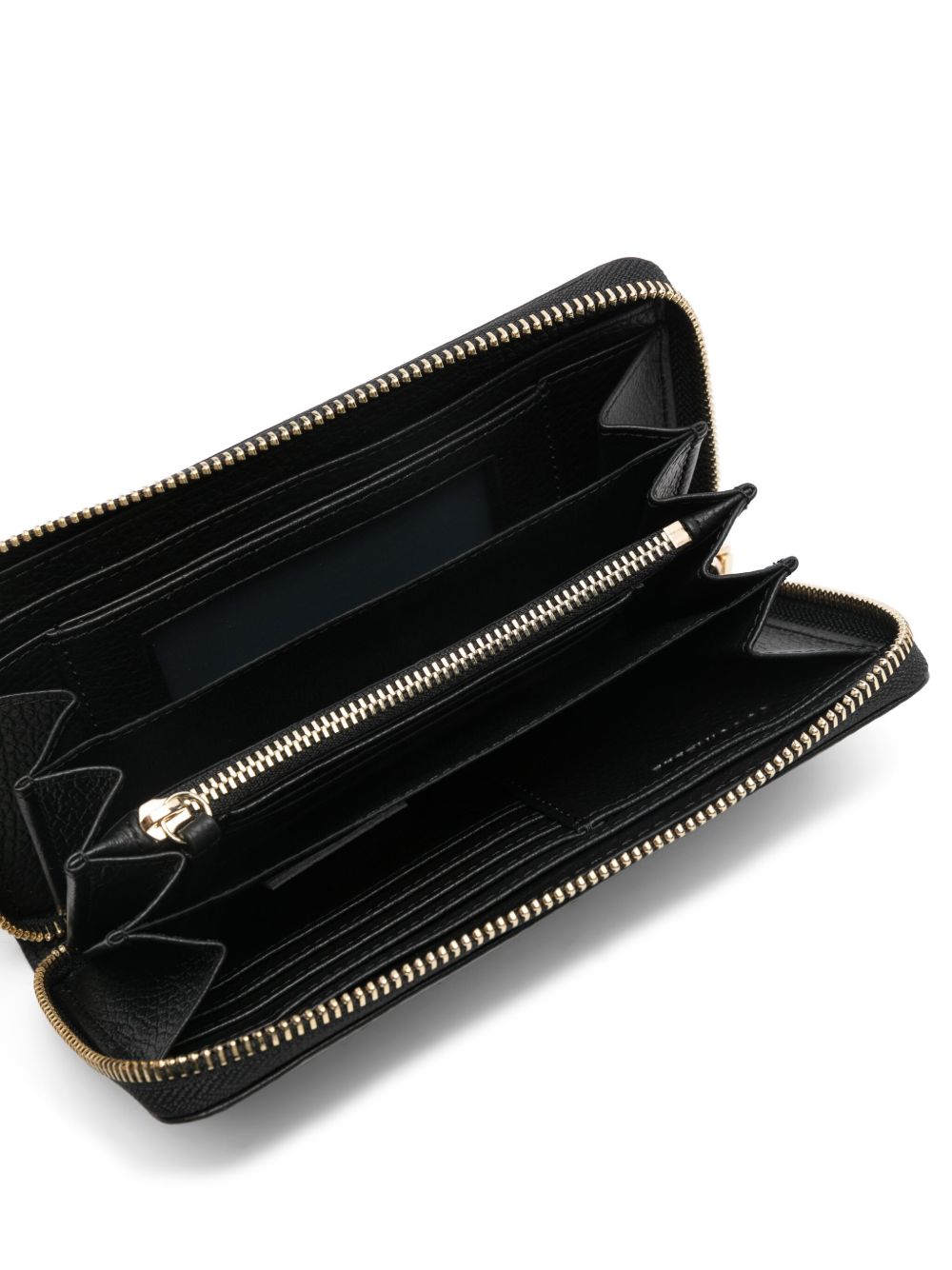 realizzato in pelle con grana, logo stampato color oro, chiusura con cerniera, porta monete con chiusura a zip, dodici porta carte, porta banconote, sei scomparti interni, misure 19 x 11 (cm), 210 grammi, 100% pelle