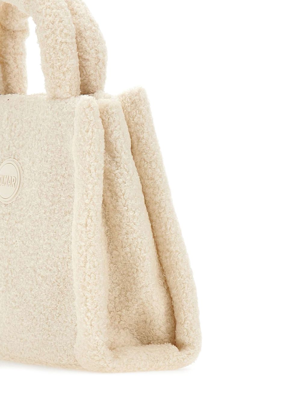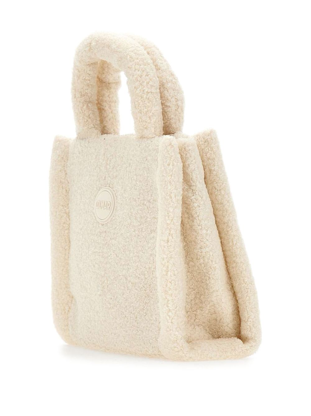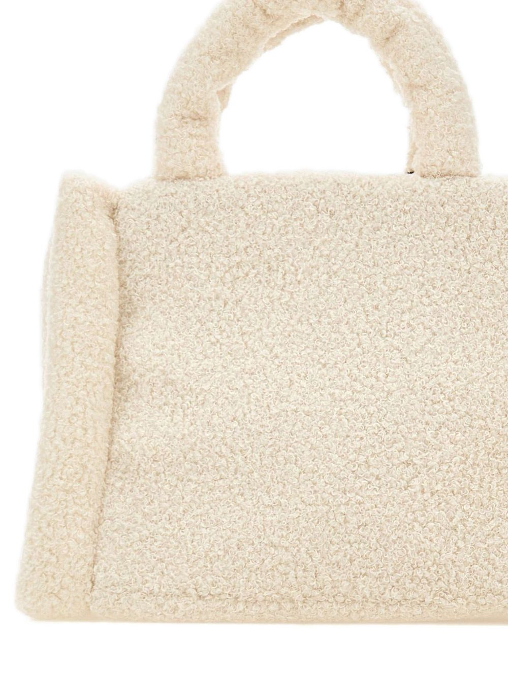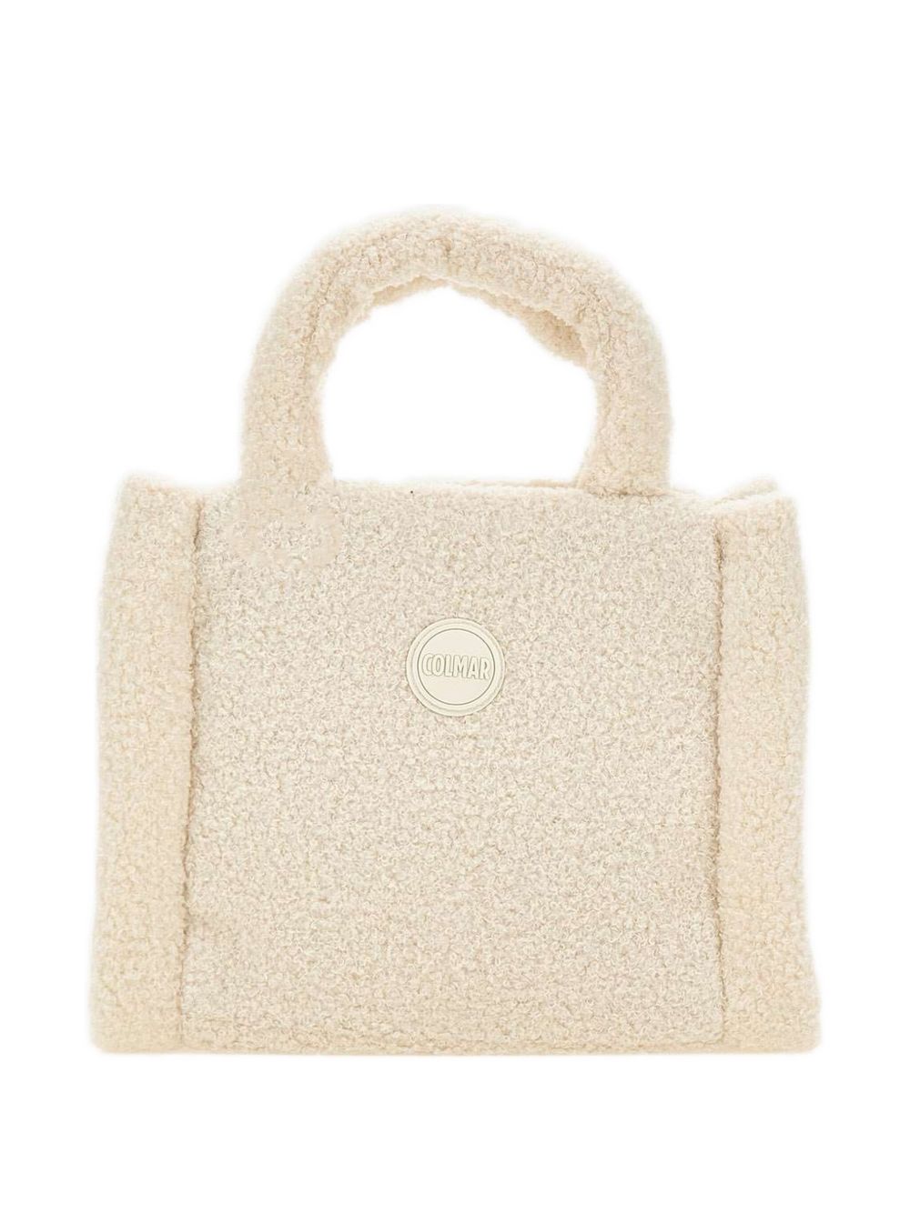 realizzata in tessuto effetto pelliccia, doppio manico, tasca interna, chiusura superiore con bottone a pressione, logo sul davanti, larghezza 26 cm, altezza 21 cm, profondità 11 cm, 100% poliestere