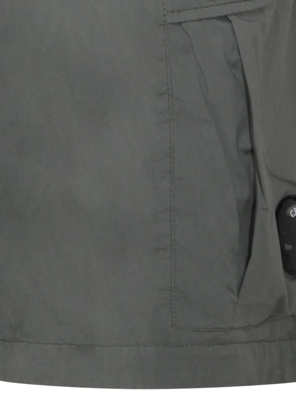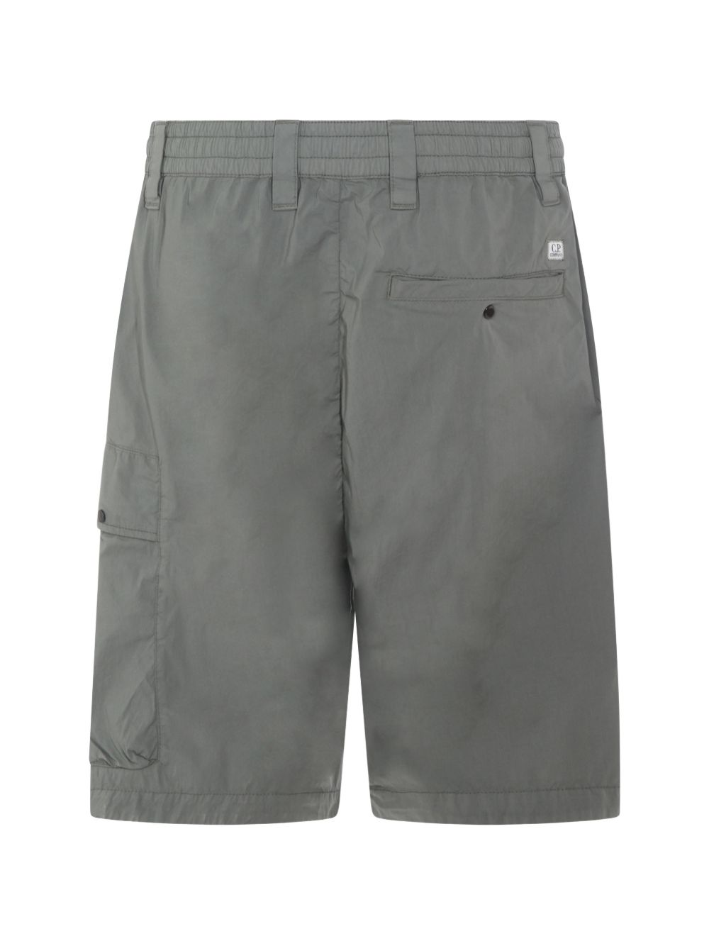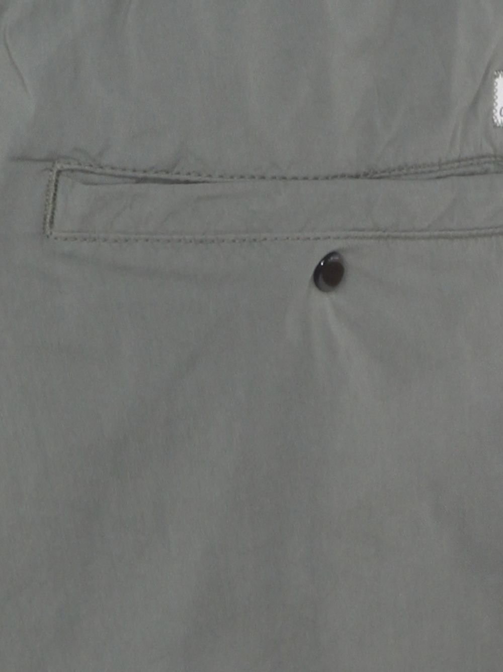 realizzato in tessuto misto nylon stretch e cotone, tasca cargo con iconica lente, chiusura con bottone e zip, vita con passanti, vestibilità regolare