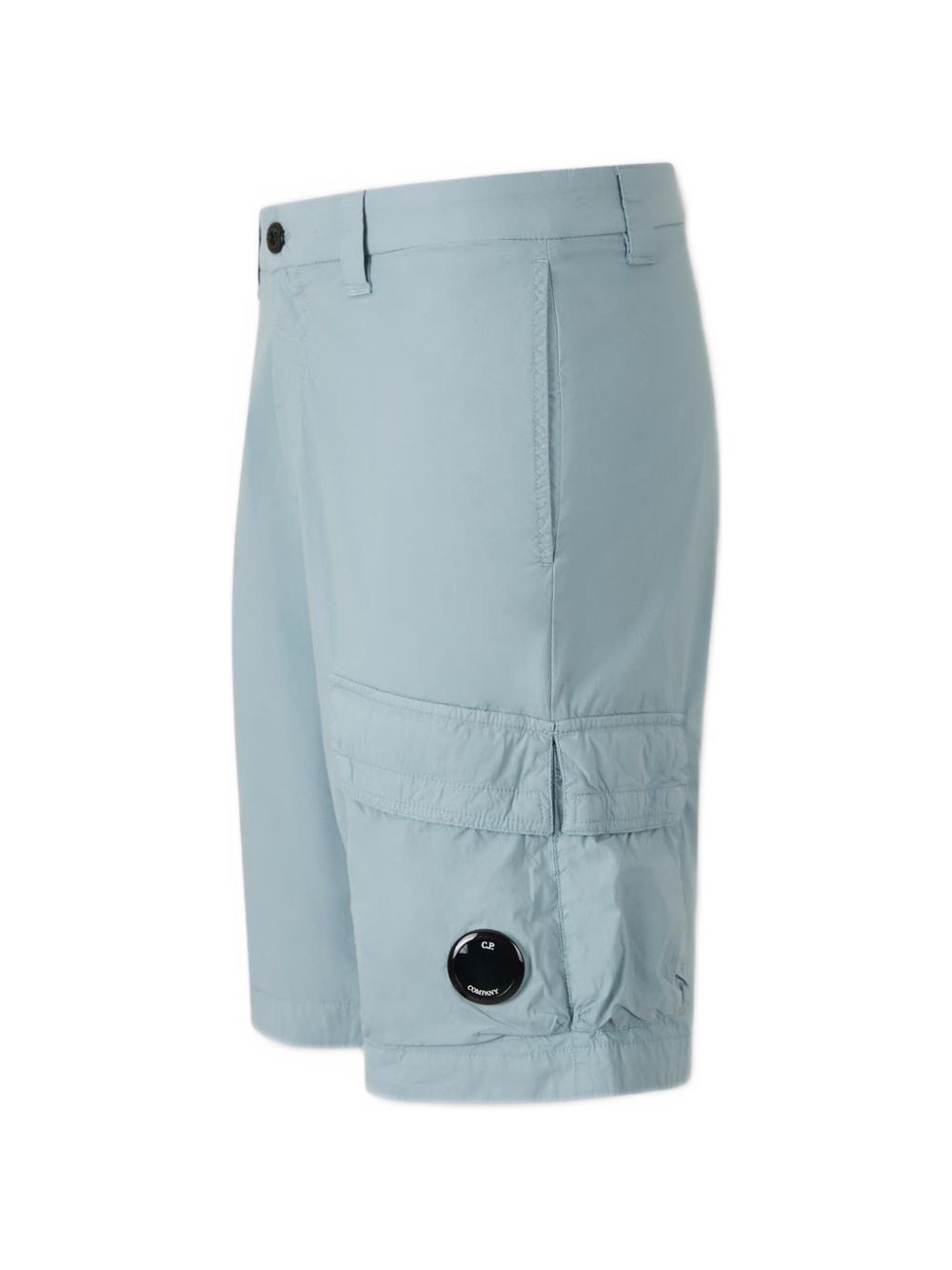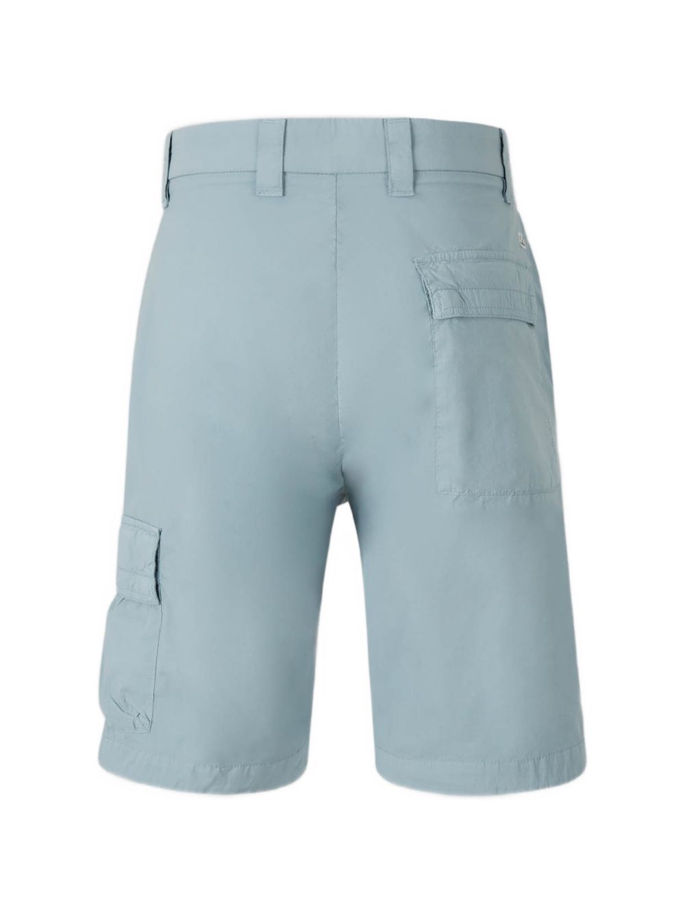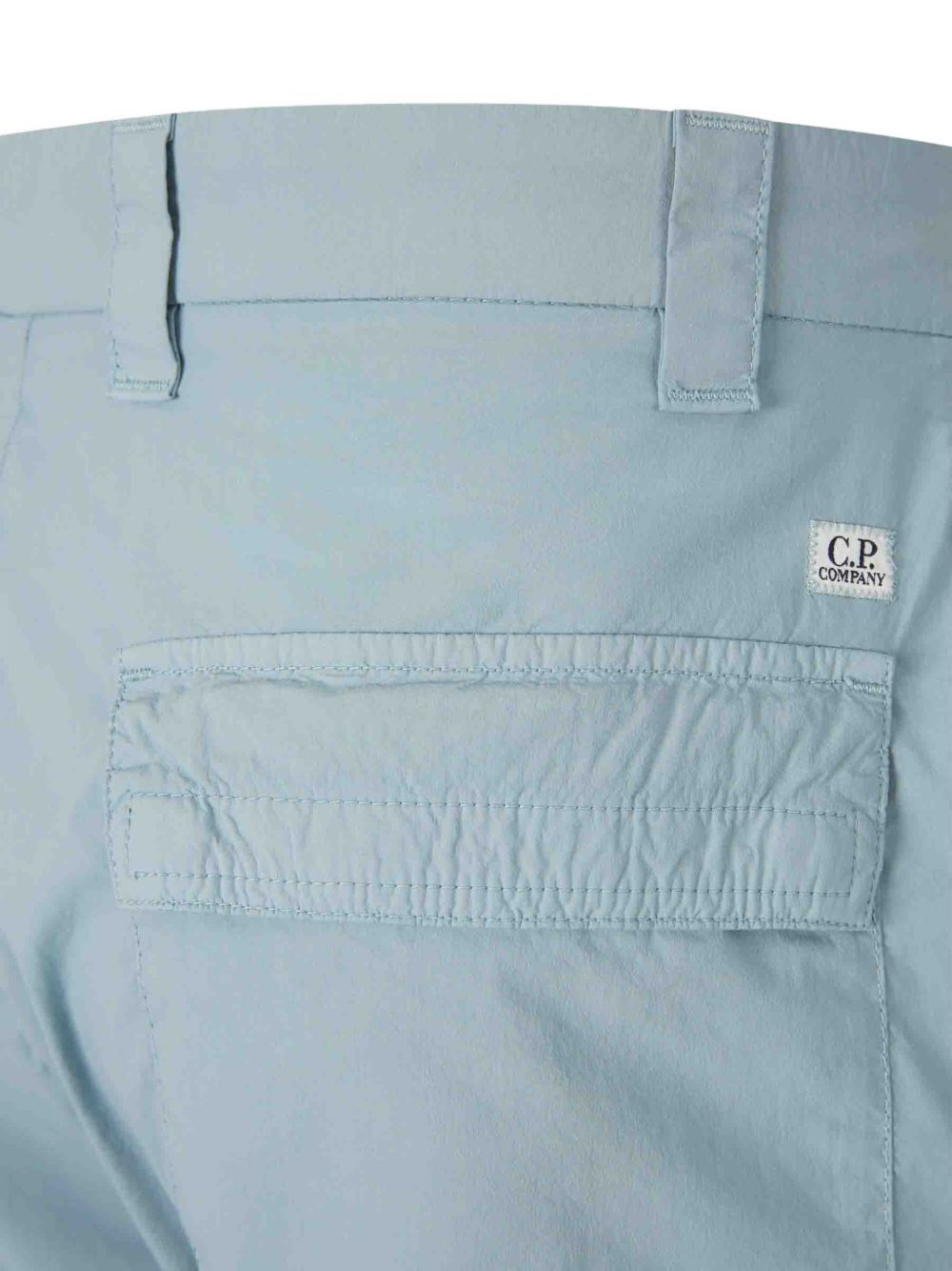 Realizzato in cotone, passanti in vita per cintura, tasca cargo con applicazione logo, chiusura con zip e bottone, tasca dietro.