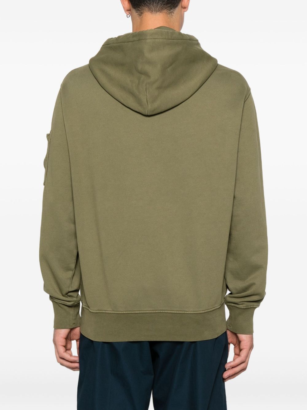 realizzata in cotone, fondo e polsi a costine, cappuccio regolabile, taschino con l'iconica lente C.P. Company sulla manica sinistra, tasca a marsupio, vestibilità regolare, 100% cotone