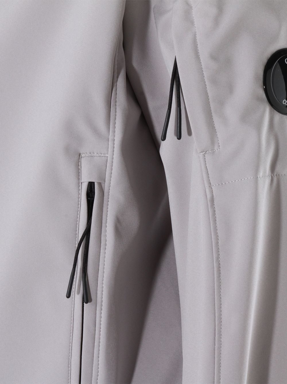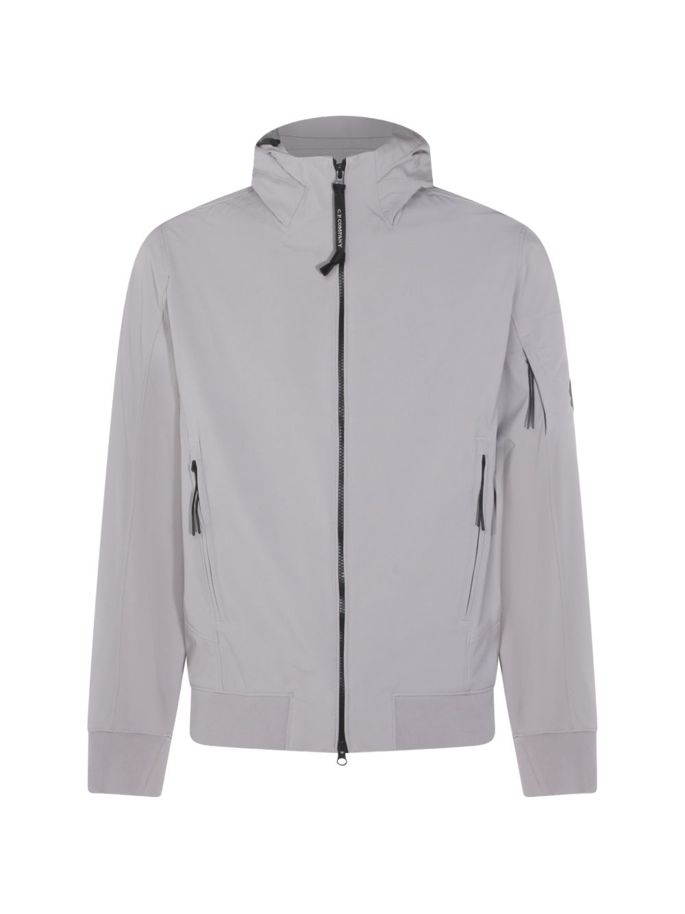 Realizzata in poliestere, chiusura con zip, tasche davanti e sulla manica con cerniera, maniche lunghe, polsini e fondo a costine, cappuccio, iconica lente applicata sulla manica sinistra.