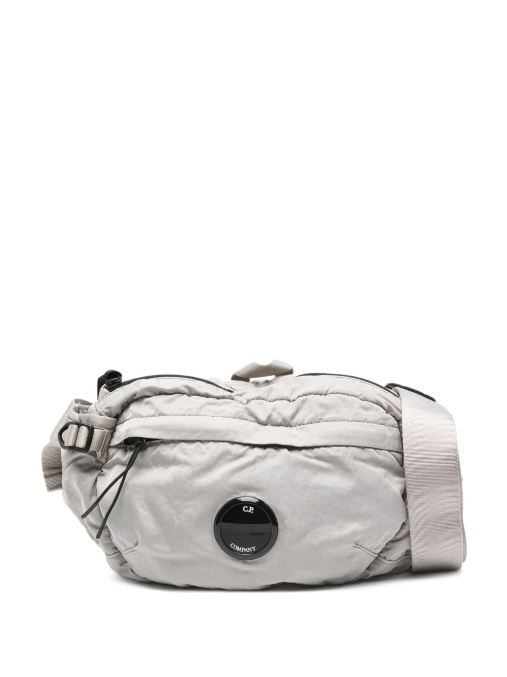 realizzato in nylon, tinto in capo, dettaglio applicazione lente, scomparti con zip, cinturino regolabile, larghezza 30 cm, altezza 18 cm, profobdità 6 cm, tracolla 135 cm