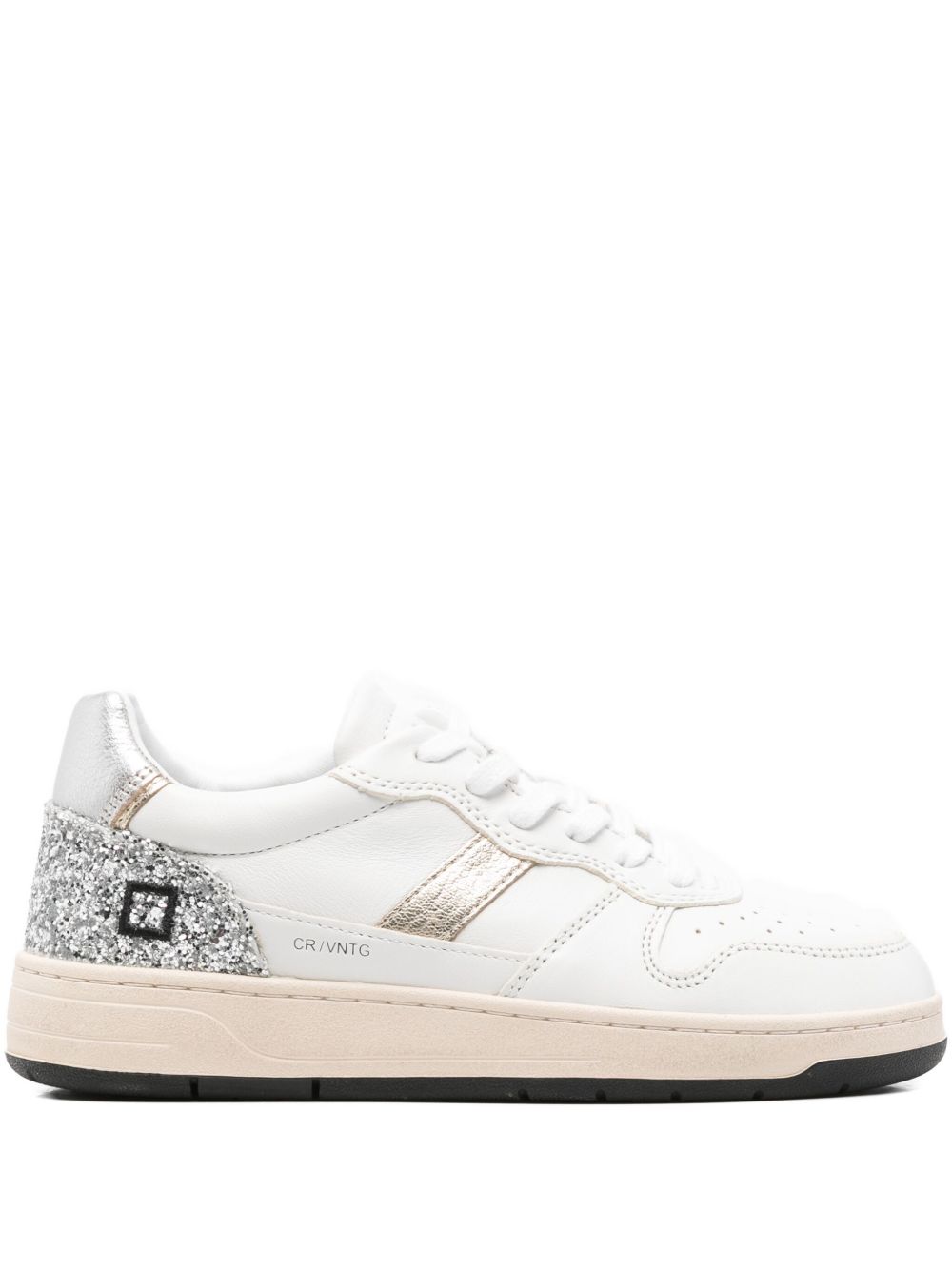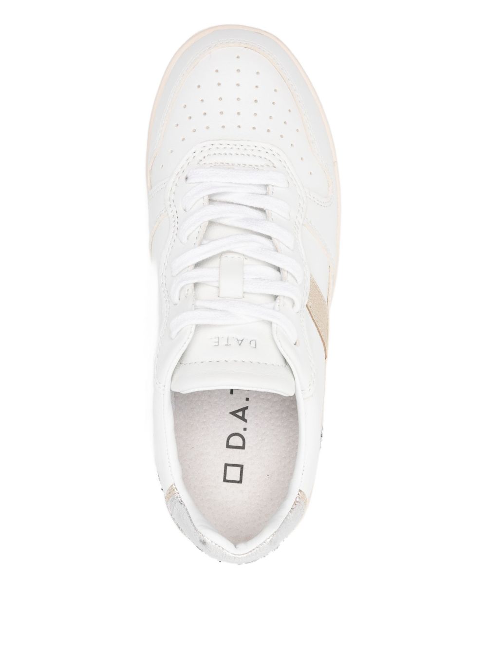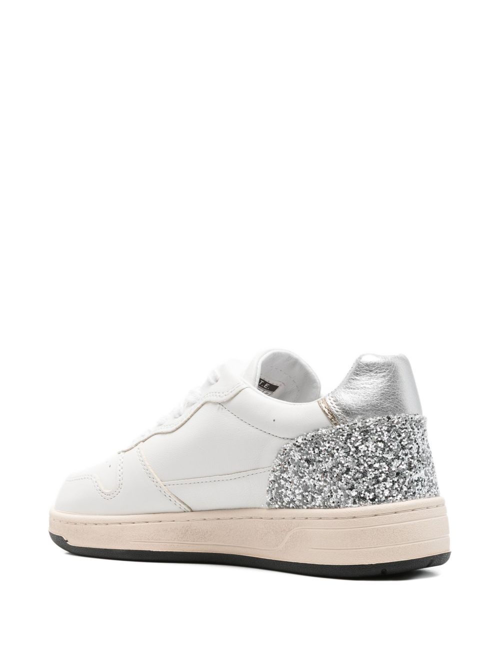 Realizzata in pelle, chiusura con lacci in cotone, apllicazione glitter nel tallone, scritta D.A.T.E impressa sulla linguetta, logo impresso lateralmente, punta traforata, vestibilità regolare, suola in gomma alta 2.5 - 3 cm, soletta interna rialzata di 2,5 cm