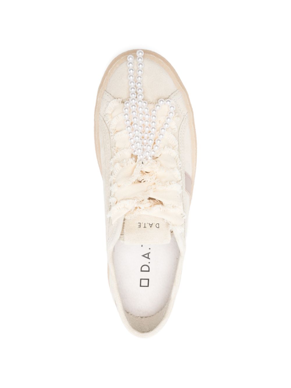 Realizzata in pelle scamosciata di vitello, applicazione perline, chiusura con lacci, logo laterale.
