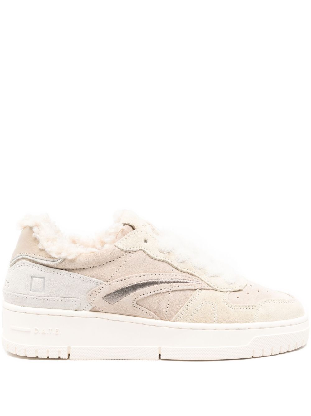 Realizzata in suede color marrone, fodera in teddy e spugna di cotone, chiusura con lacci in lana, nome del modello impresso dietro, scritta D.A.T.E impressa sulla linguetta, logo impresso lateralmente, punta traforata, vestibilità regolare, suola in gomma alta 2.5 - 3,5 cm, soletta interna rialzata di 2,5 cm