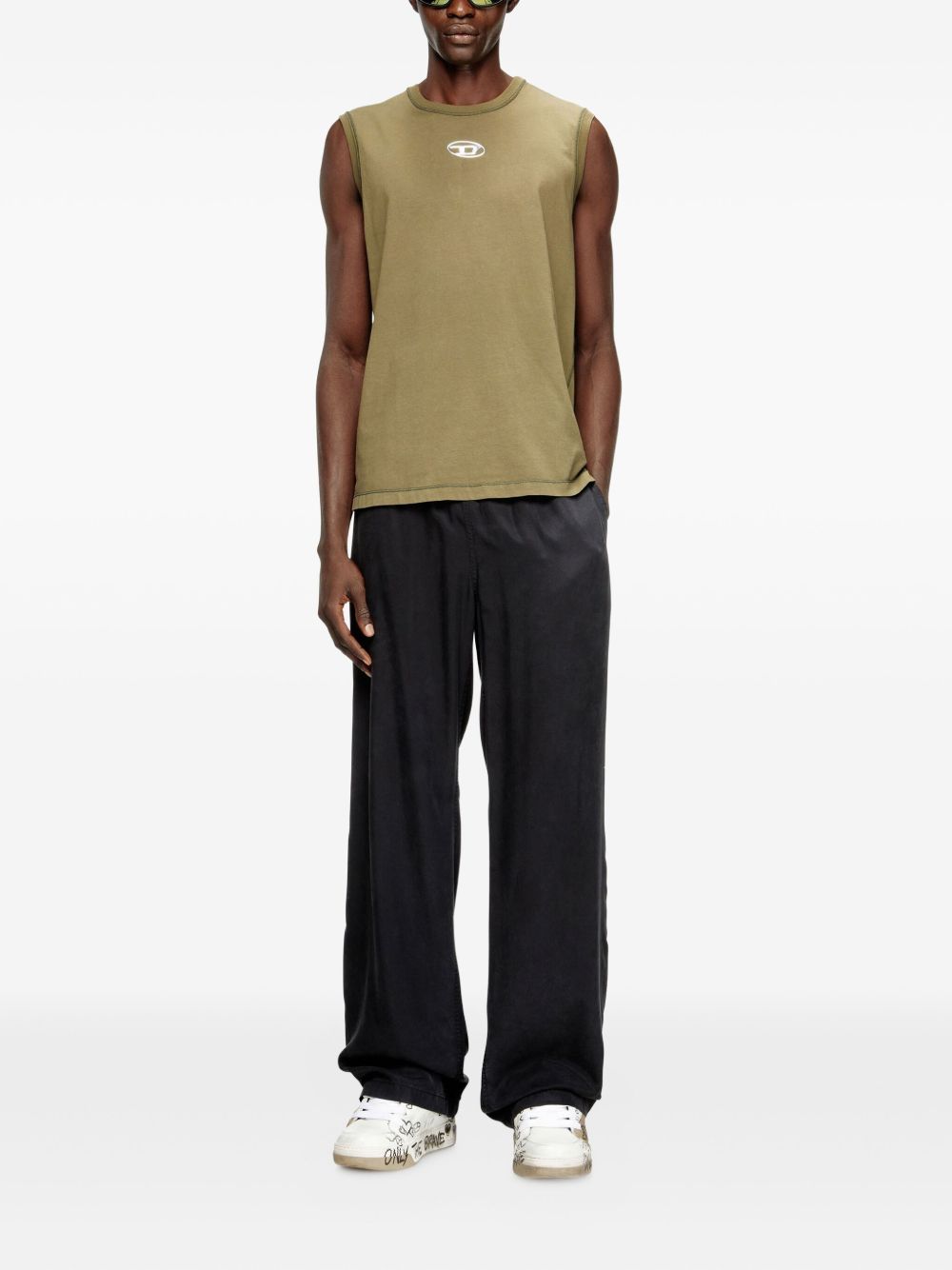 Canotta uomo Diesel verde militare con logo oval D