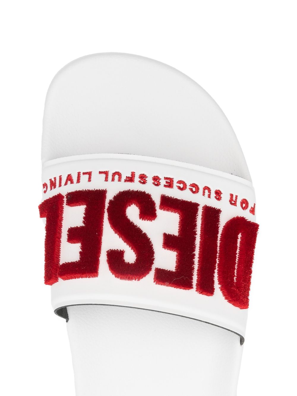 Realizzata con gomma, scritta logo rossa in rilievo sopra, design slip-on, plantare sagomato.