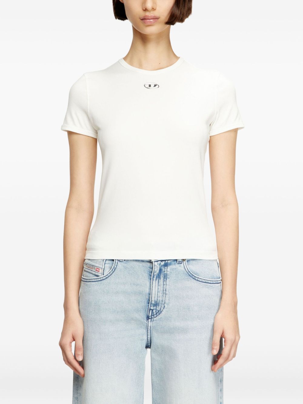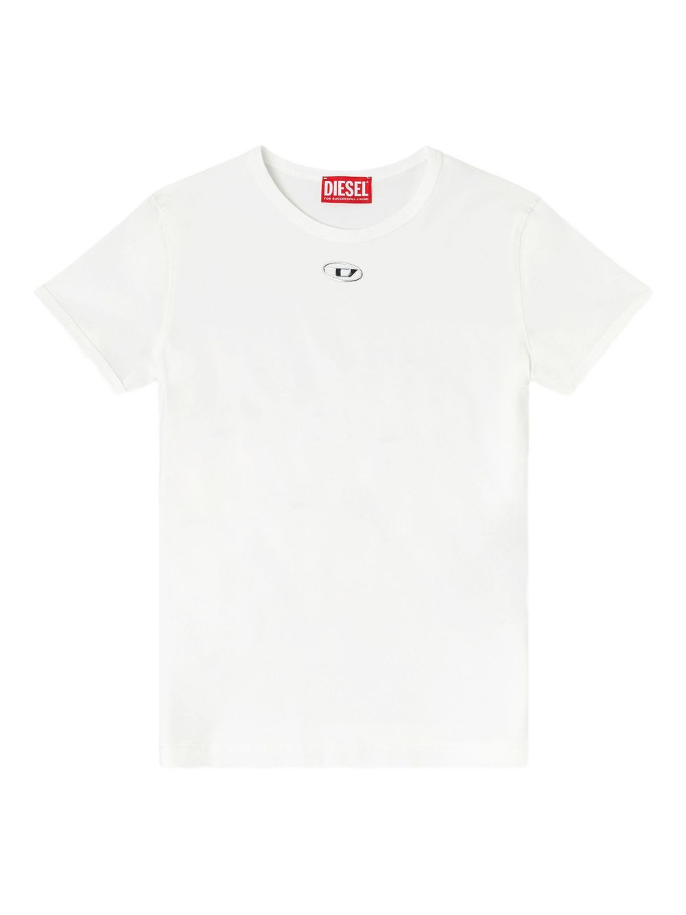 Realizzata in cotone biologico, girocollo, mezza manica, logo Oval D color argento davanti, 95% cotone biologico, 5% elastam