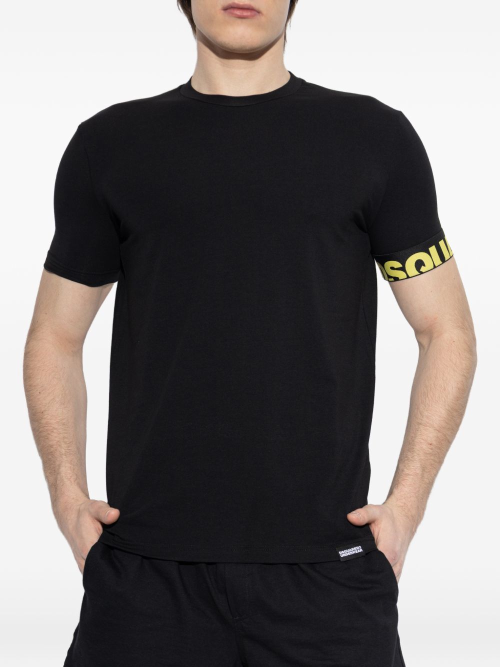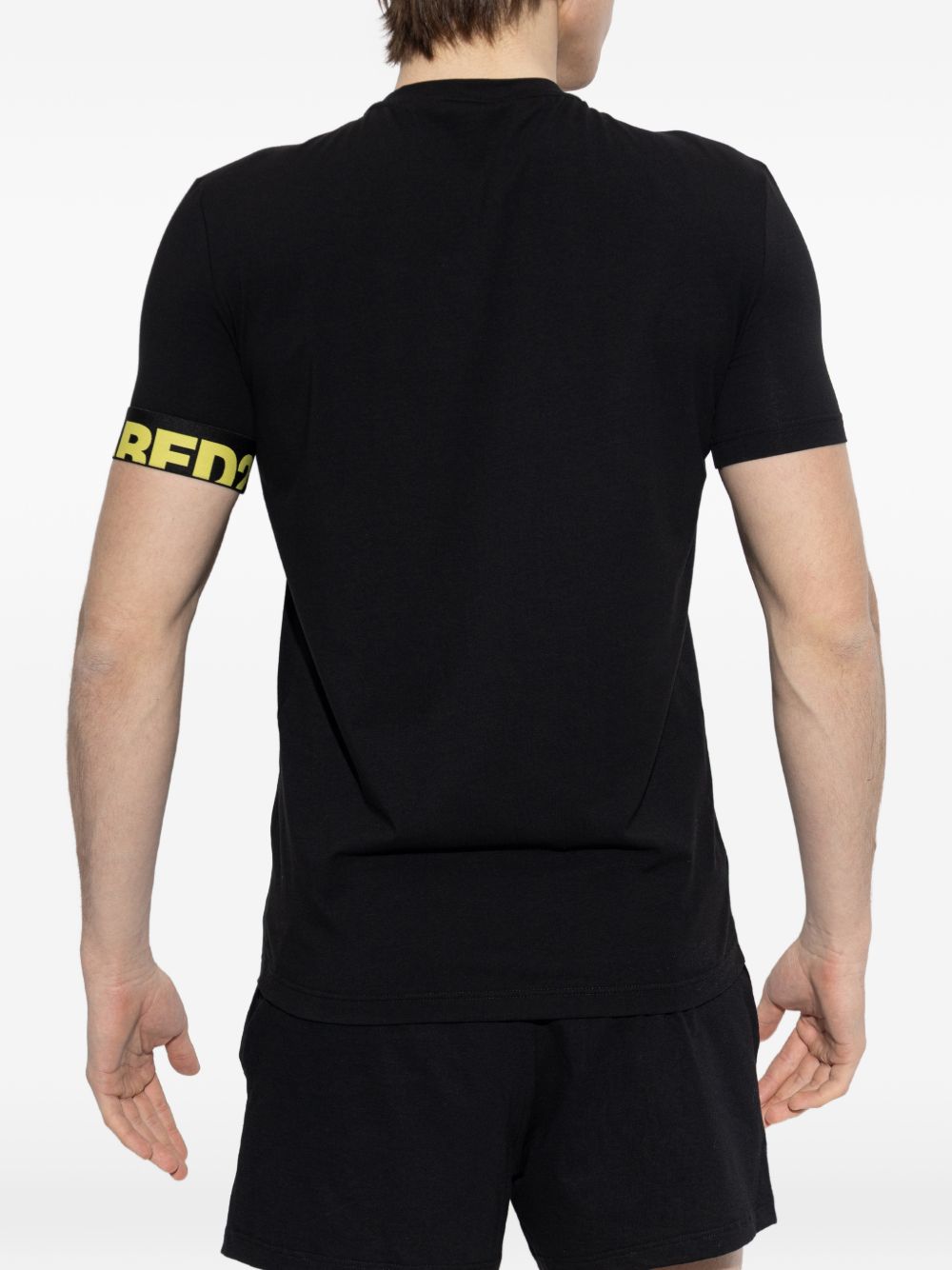 Realizzata in cotone, maniche corte, girocollo, etichetta logata in fondo, banda logata stampata sulla manica sinistra, 94% cotone, 6% elastam
