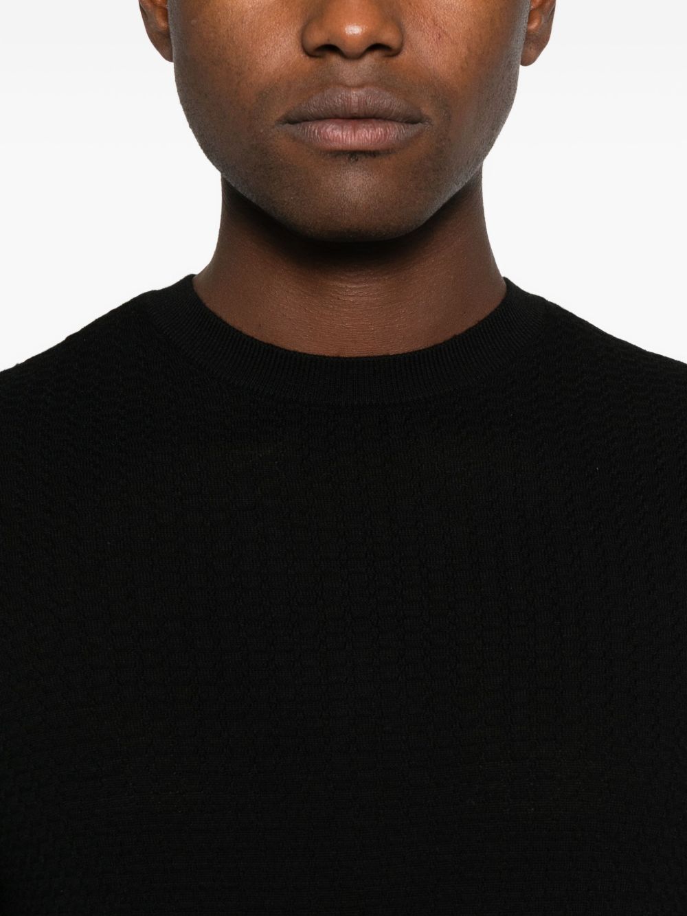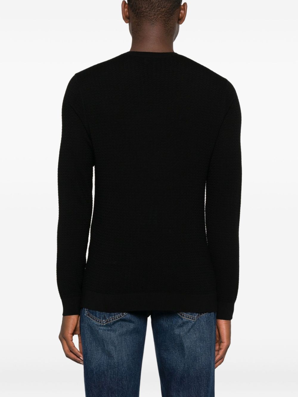 Realizzata in lana vergine, girocollo, maniche lunghe, 100% lana vergine