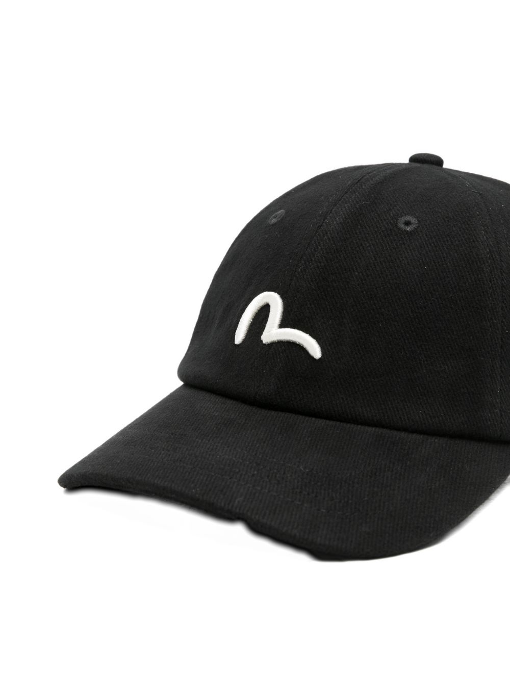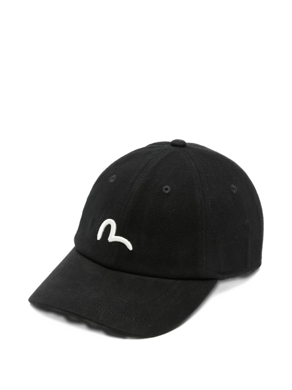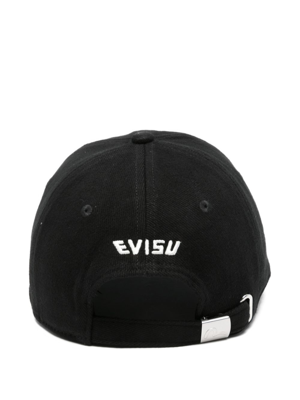 Cappello Evisu in colore nero con logo, caratterizzato da design essenziale e stile streetwear.