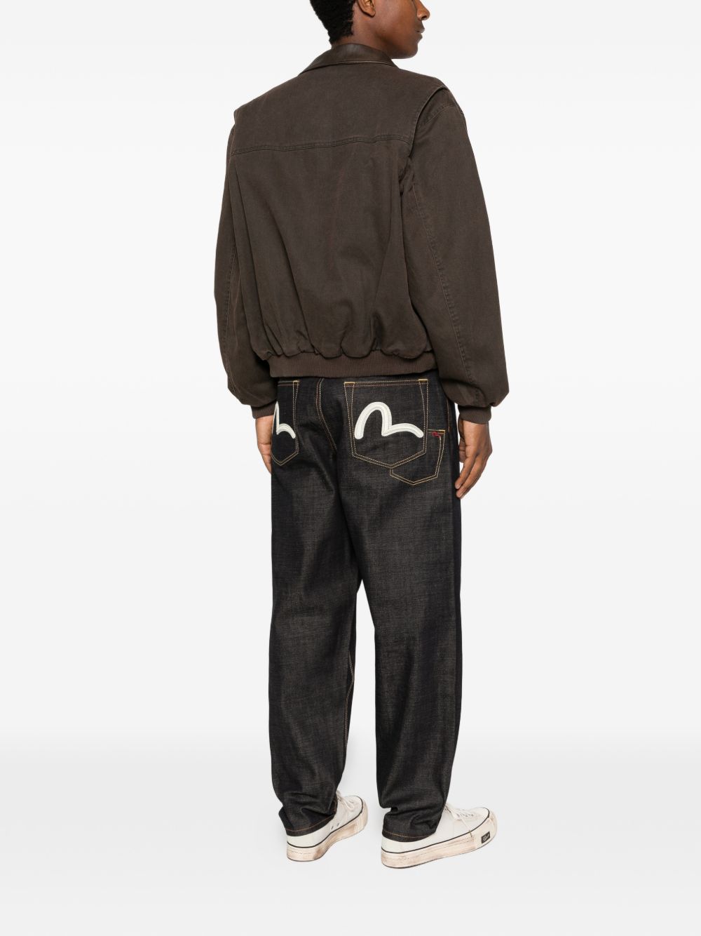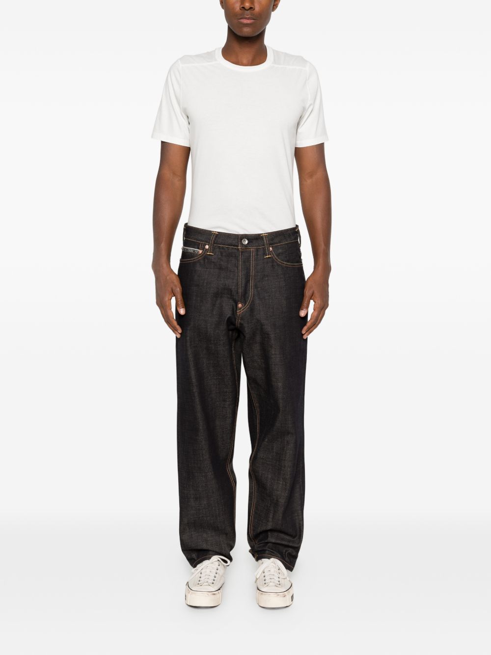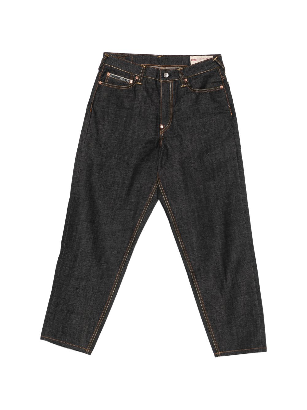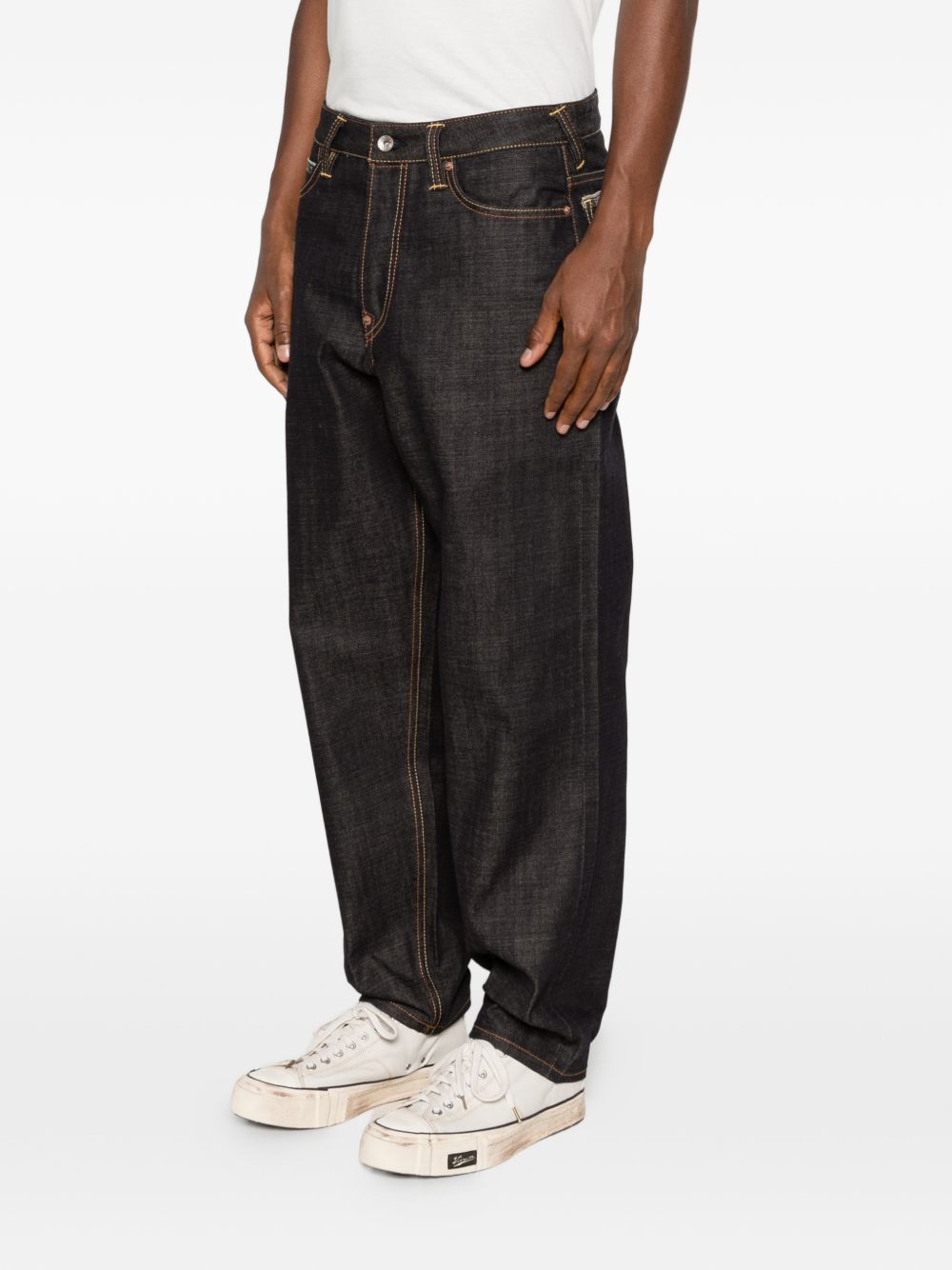 Jeans Evisu da uomo in denim indigo con dettagli grafici distintivi, perfetti per chi cerca un capo con forte identità.